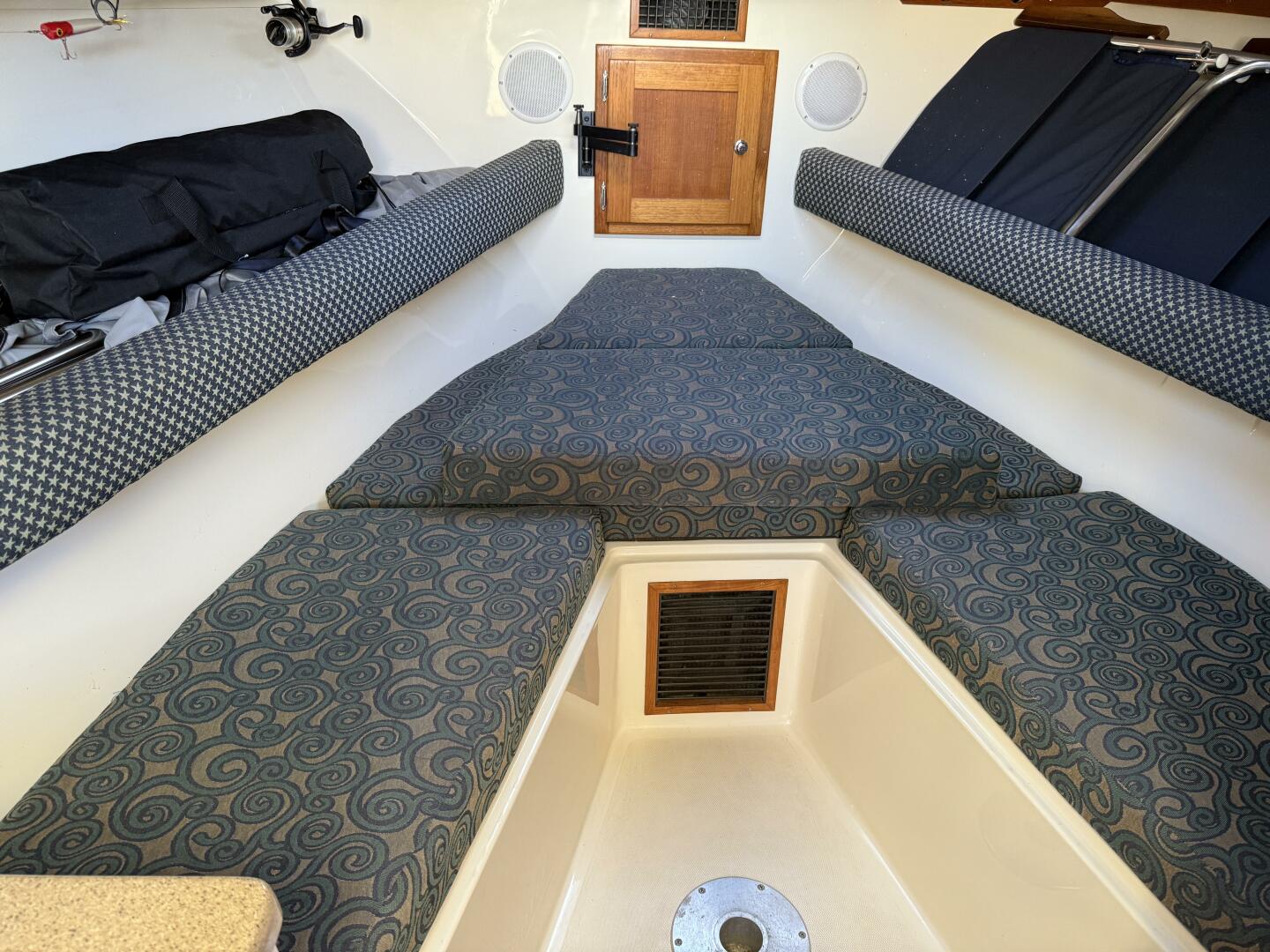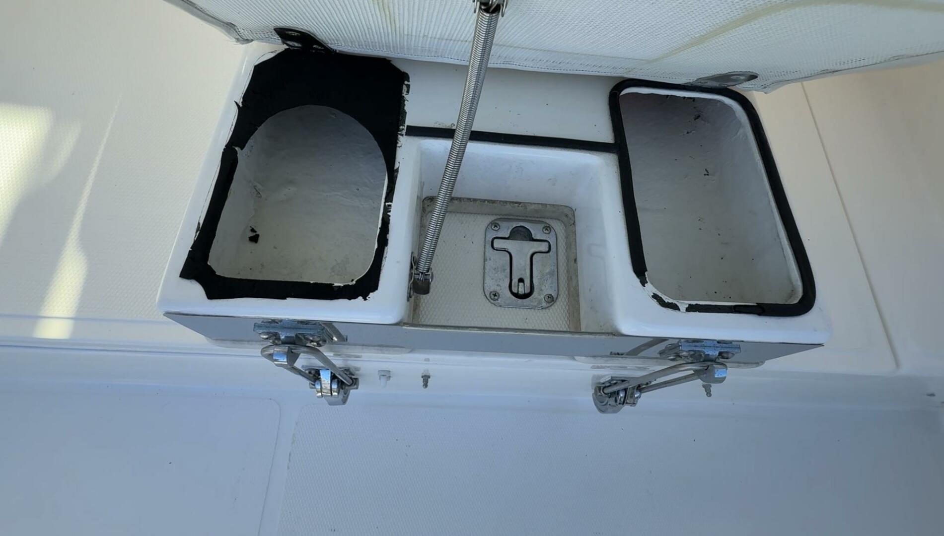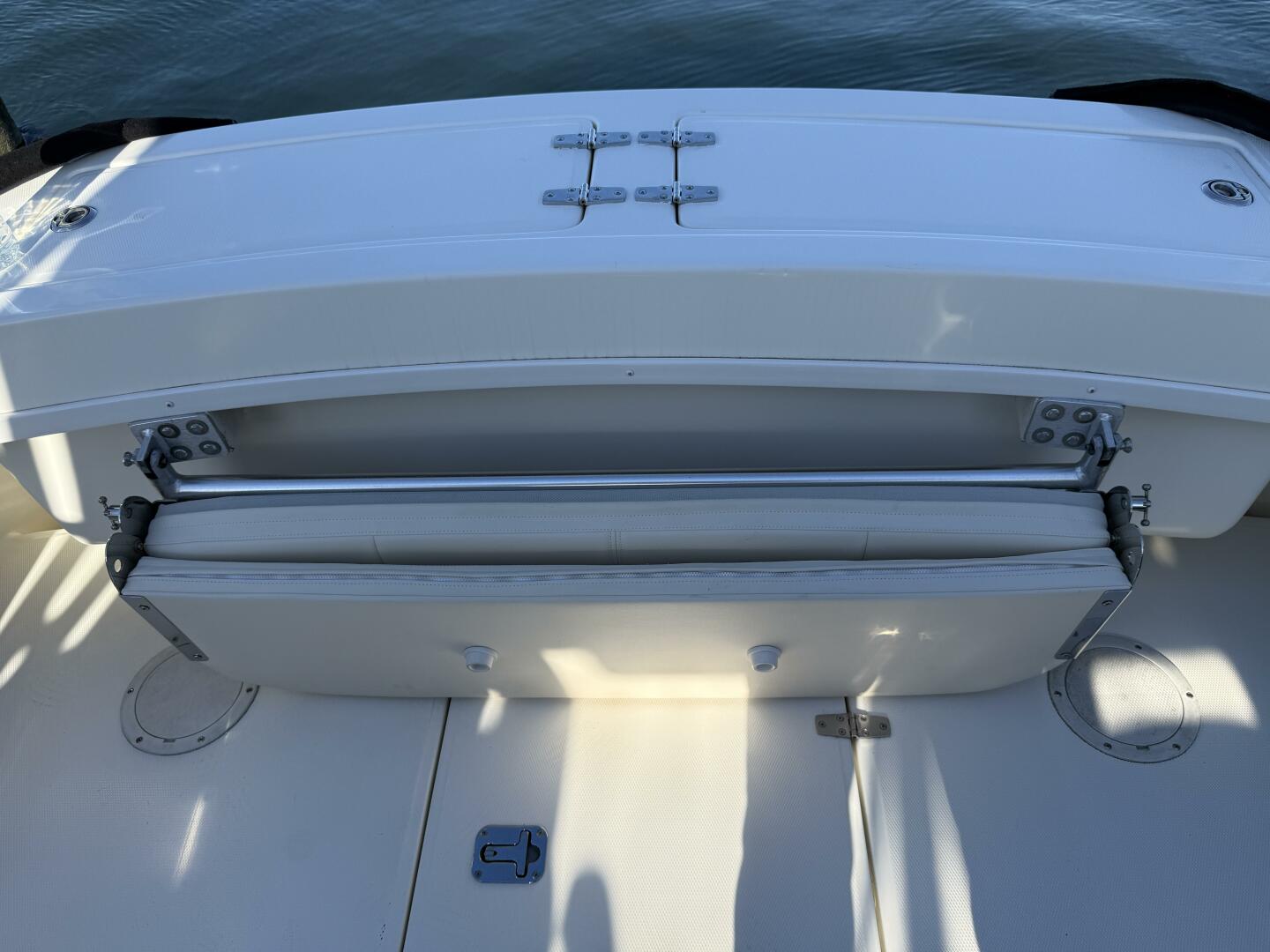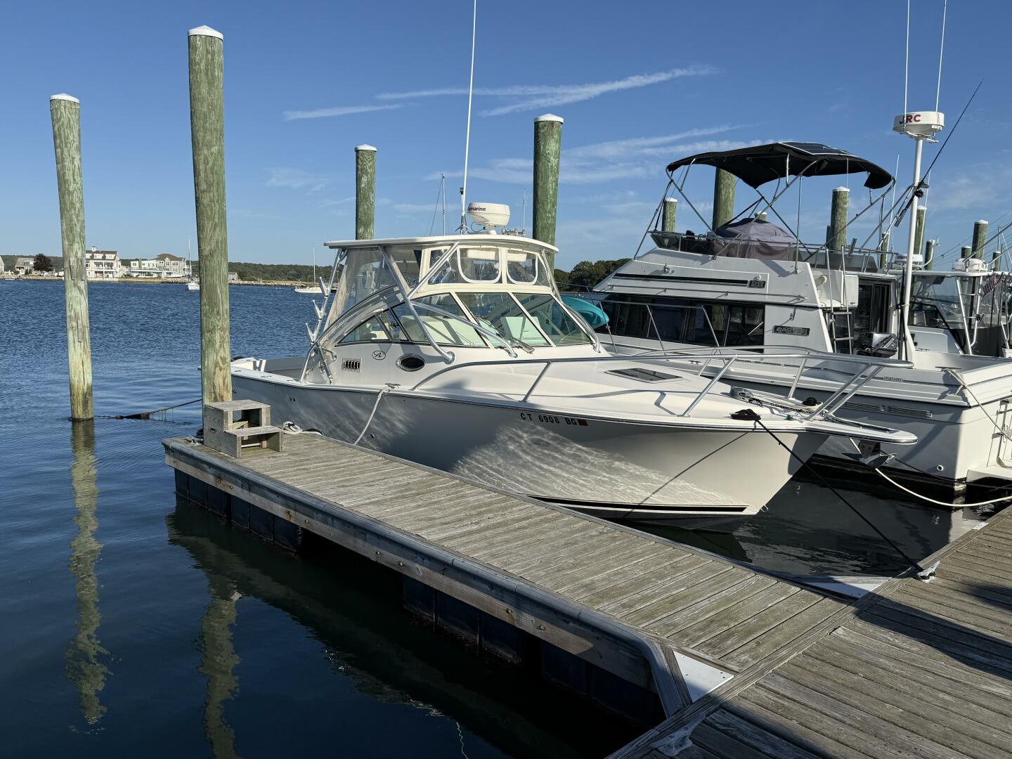 Exceptionally well maintained with some very smart custom upgrades, including custom captain & mate seat consoles with aft facing seats, and custom sternrail seat with backrest in matching upholstery.