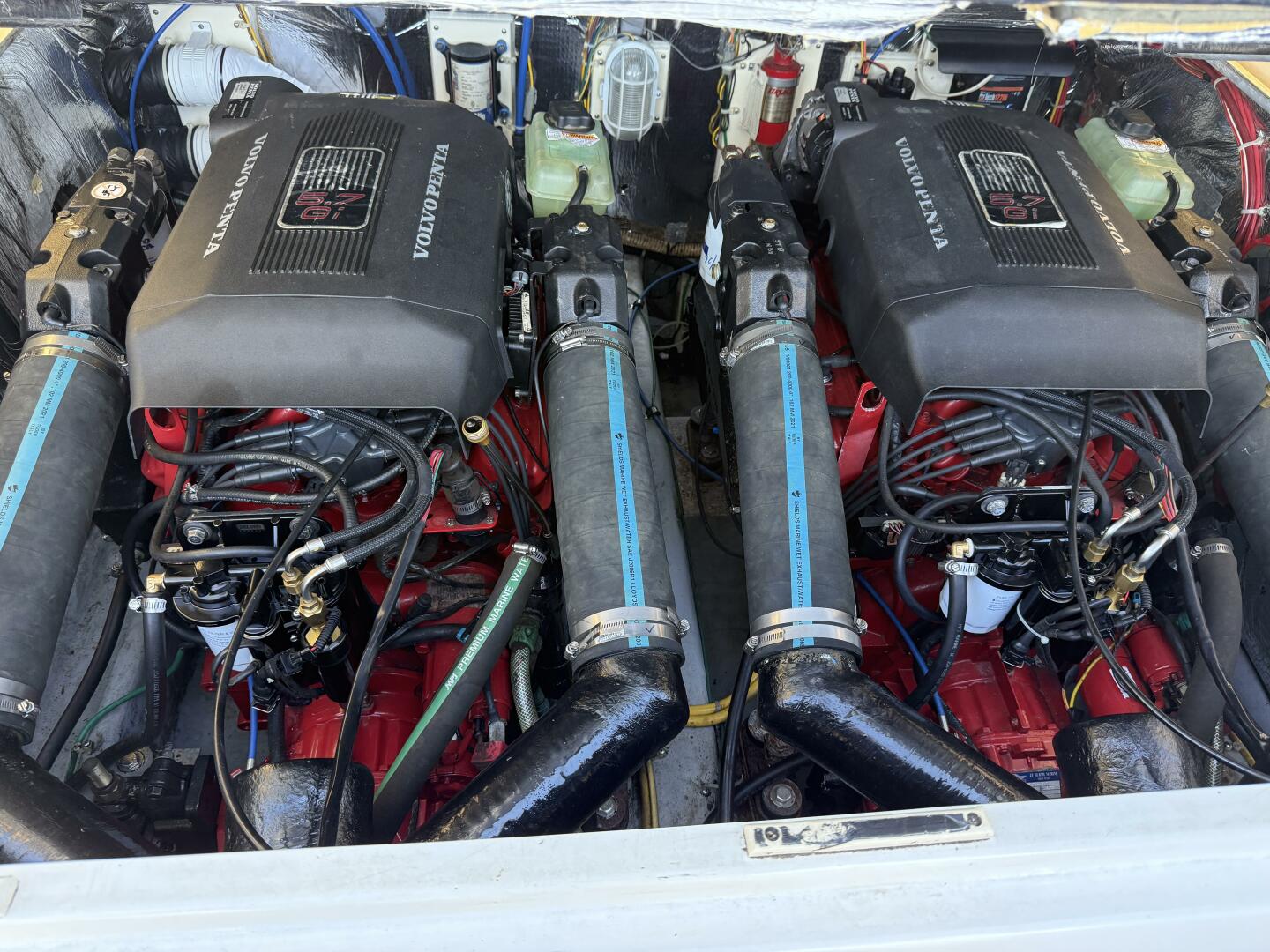 Other upgrades include larger custom made water separator mufflers. The owner is very mechanical and has kept the engines and drivetrains in remarkable, almost like-new condition with all serviceable items recently replaced within the last couple of years including fuel pumps & hoses, motor mounts, hoses, belts, and the risers were replaced about two years ago. Cutlass bearings and alignments in 2024. Tune-ups every couple years. Each engine has a freshwater flushout that rinses all parts exposed to saltwater, that he uses every time back to the dock, extending the life of the risers to seven years.