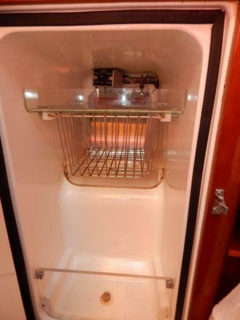 The forward cabin has a V-berth with storage lockers port and starboard. Next aft is the main salon with a U-shaped convertible dinette to port and a convertible settee to starboard, next aft is the galley to port and the navigation station to starboard. Next aft is the large aft cabin with a queen berth and the enclosed head with shower stall is to starboard.