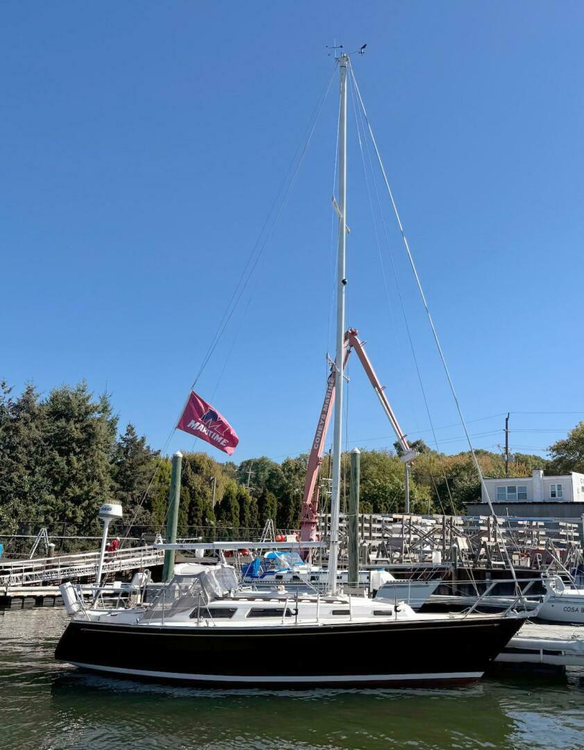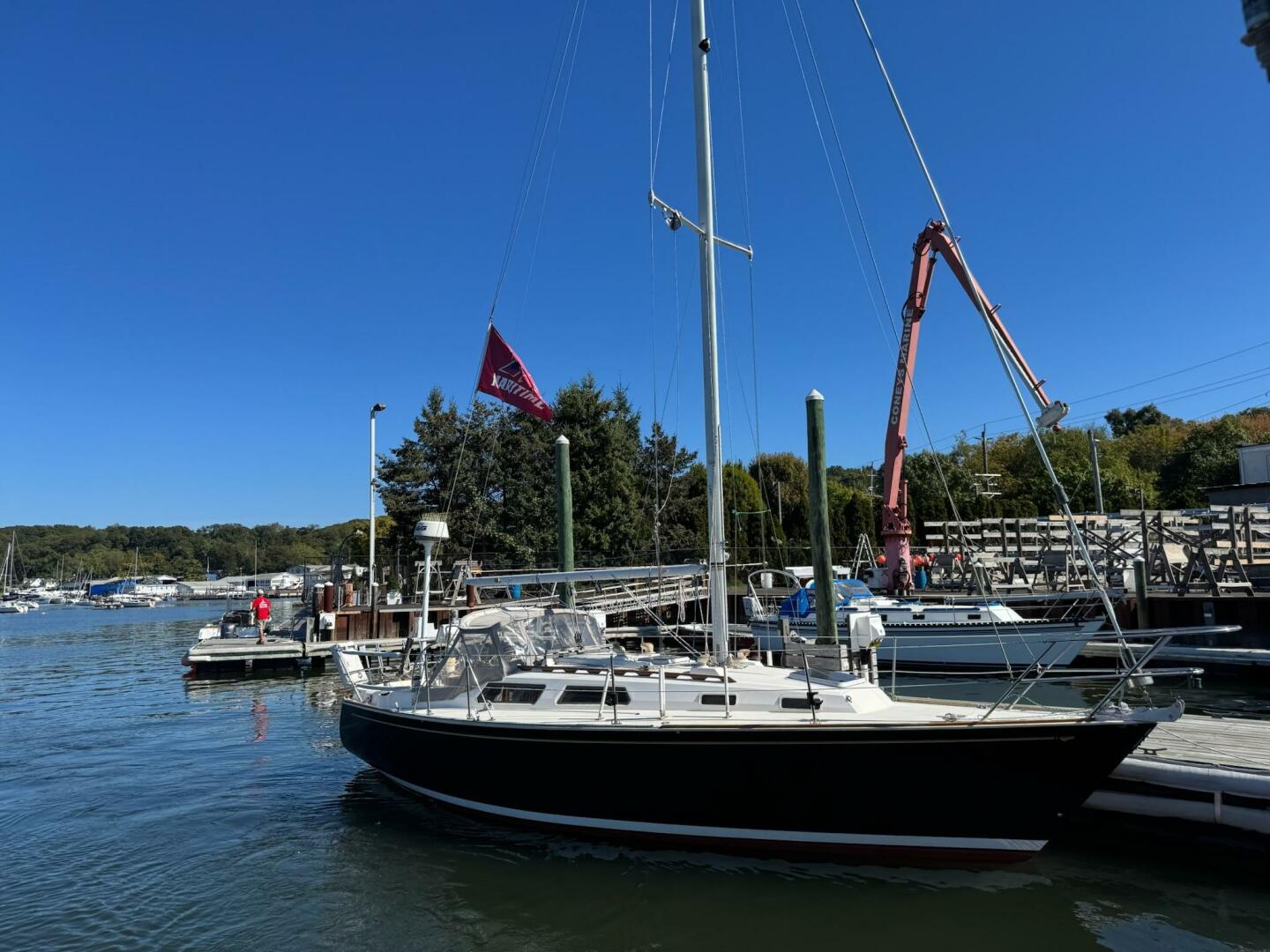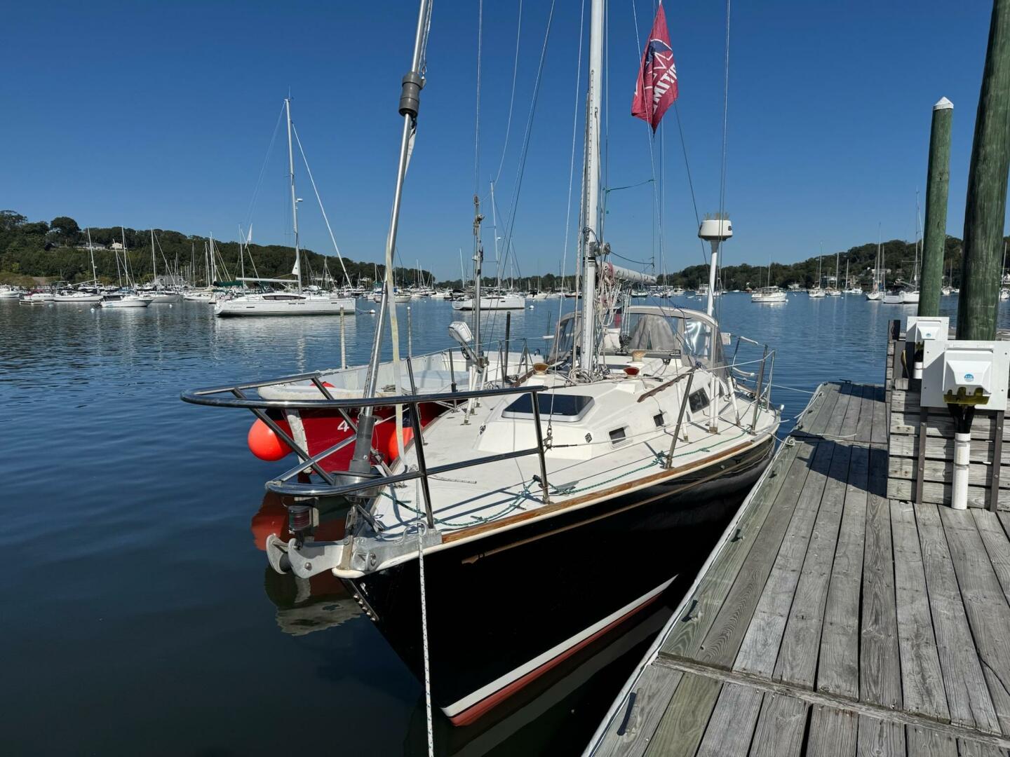 This classic Sabre features a Black Awlgrip hull and beautifully maintained interior with varnished teak and holly floors, teak cabinetry, and updated gray upholstery. A fine example of craftsmanship and care—ready to sail away.