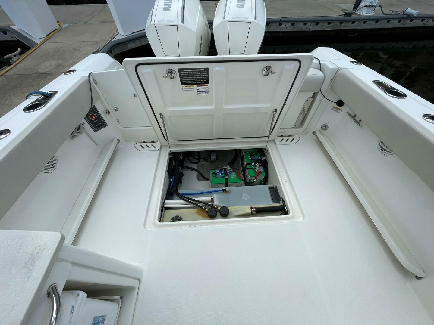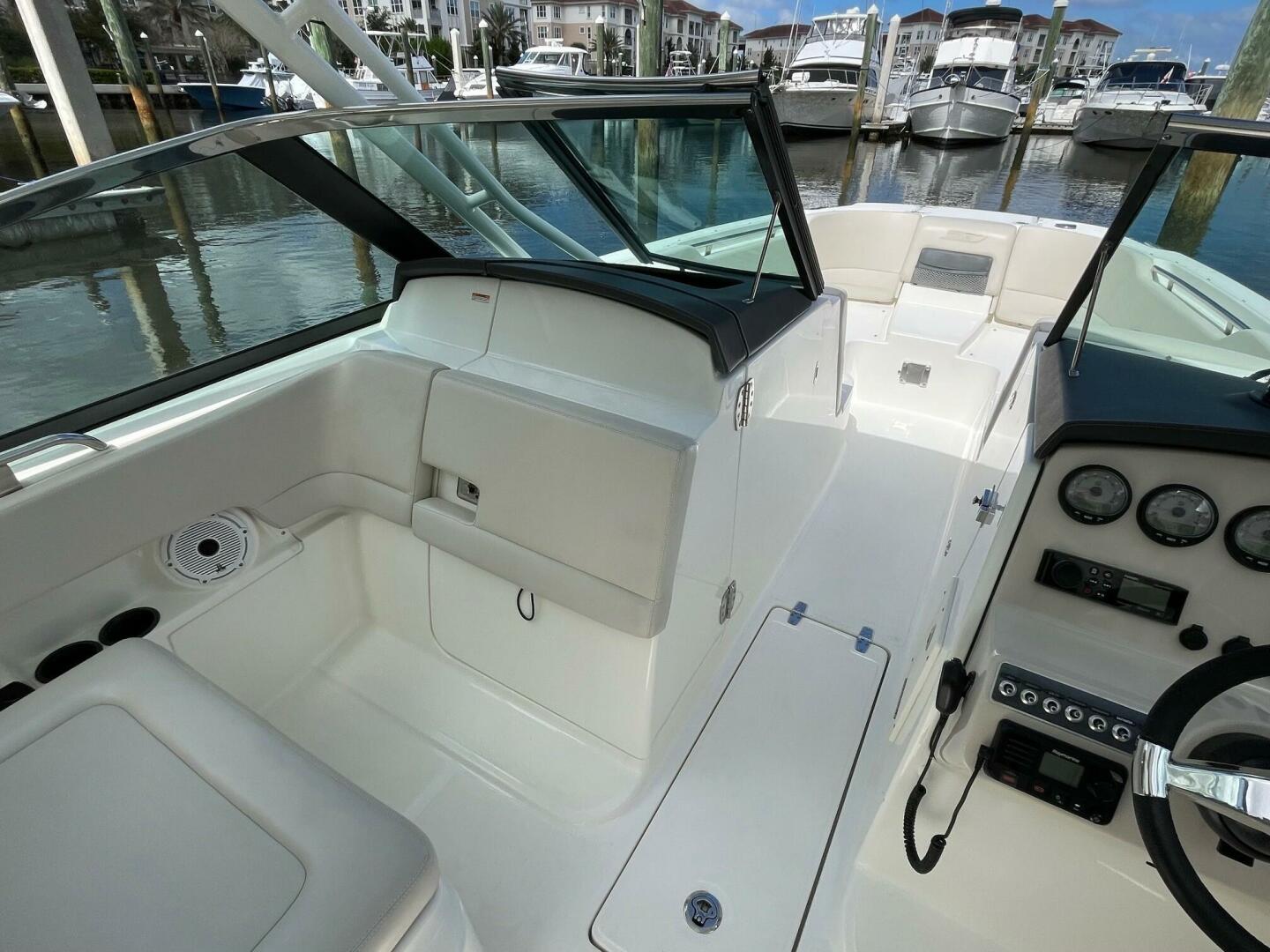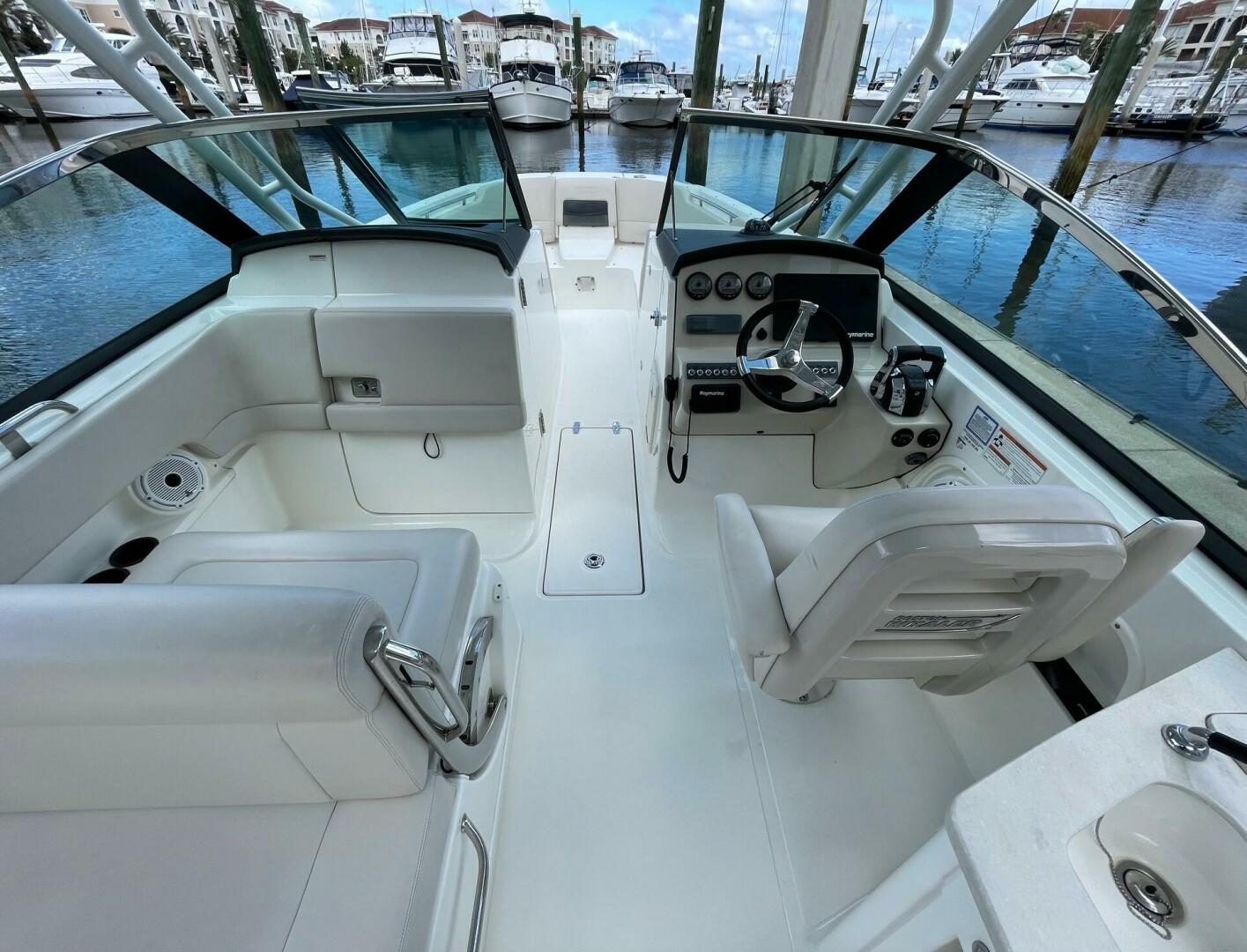 Powered by twin Mercury V8 250 HP with only 225 hours. This 270DC Vantage is the perfect platform for cruising, sand bars, fishing, or just anchoring out to watch the sunset.