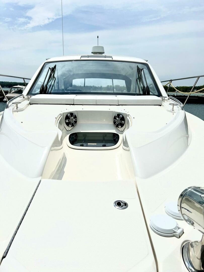 With a sleek hardtop and enhanced coupe foredeck seating/lounging zone, the Sundancer 350 Coupe is a great entertaining platform and an inviting place to spend entire days on the water. Premium amenities, state-of-the-art technology and excellent performance - with sterndrive propulsion and Axius joystick docking combine to deliver a fully enjoyable cruising experience and stress free docking. With a sleek, stylish look, fixed windshield, and sunroof that is unmistakably Sea Ray.