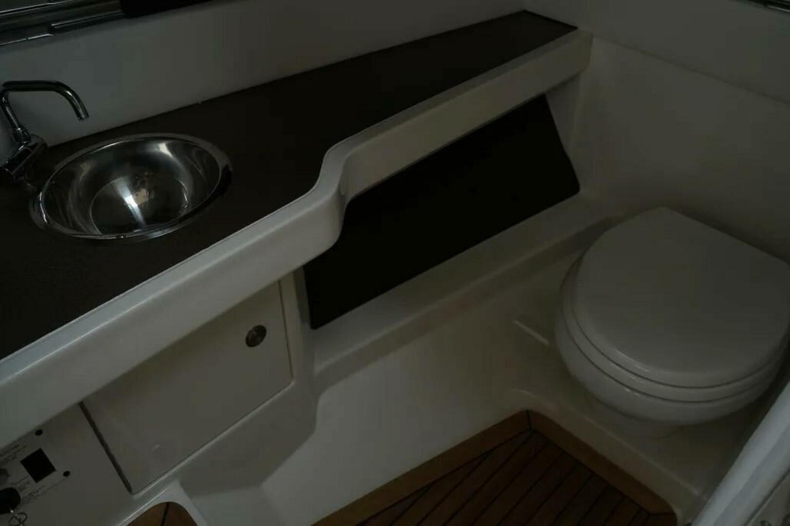 - Interior Storage Compartment (Under Helm): Access From Flip Up Bow Aft Cushion/ Bolster; Light; Access Door To Backside of Dash Instruments; Carpeted Floor