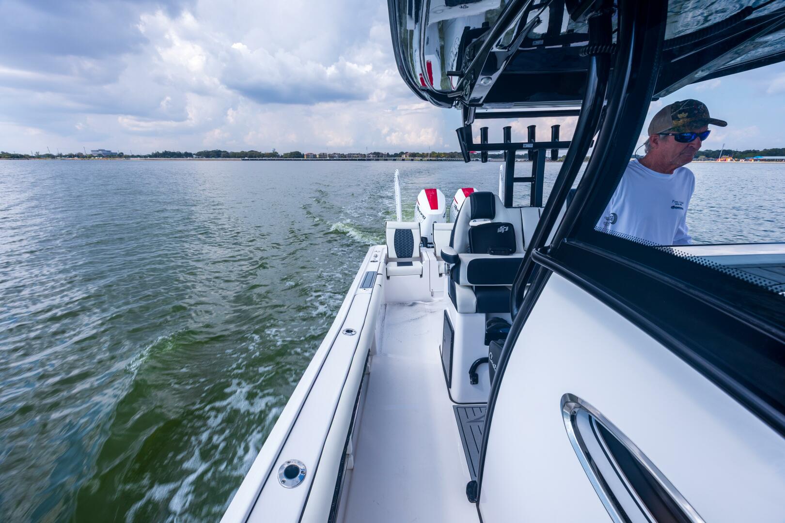 The ultimate hybrid bay boat—built for serious anglers and luxury-minded boaters alike. Powered by twin Mercury 400 V10 Racing engines with just 60 hours and factory warranty through August 2027, it offers speed, and smooth handling with the peace of mind of a transferable warranty.
