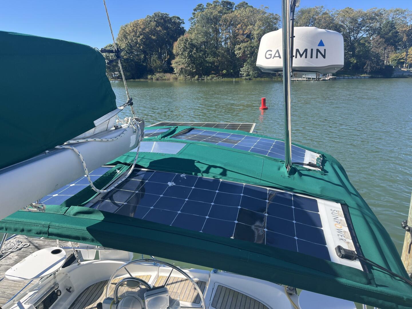 | Notable Upgrades: Solar panels – 550W (2021–25) Dometic 12,000 BTU air conditioning (2020) SeaWater Pro watermaker (2023) Genmax 3300W generator (1 hour) Raymarine ST4000 MK2 autopilot (2/24) Garmin chartplotter and radar Standing rigging replaced (2018) Rocna 33lb anchor (2022) with new chain (2025) Cockpit canvas replaced (2021–23) |