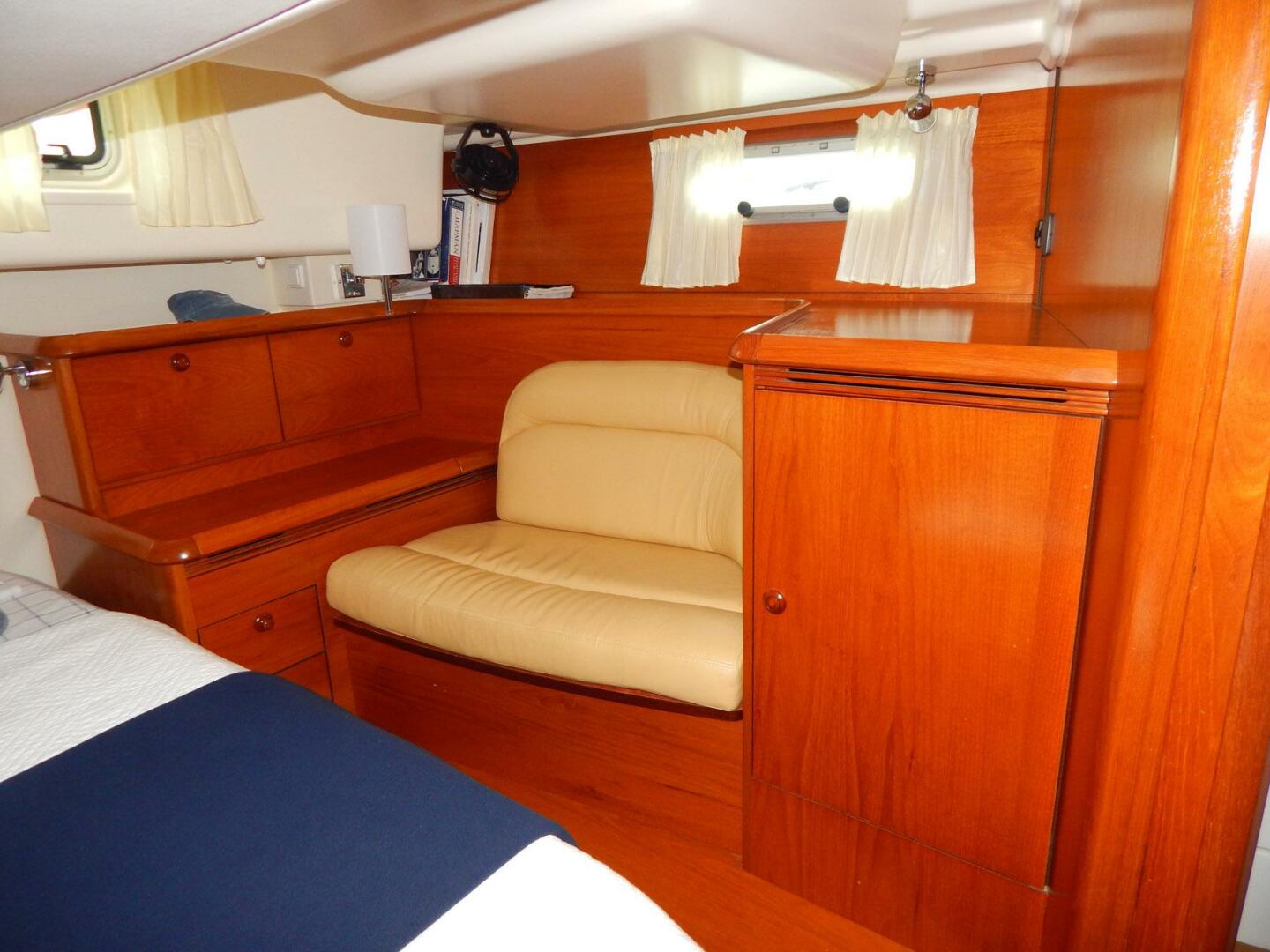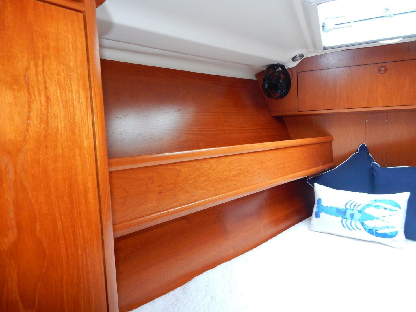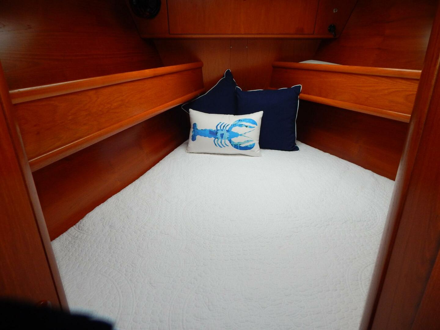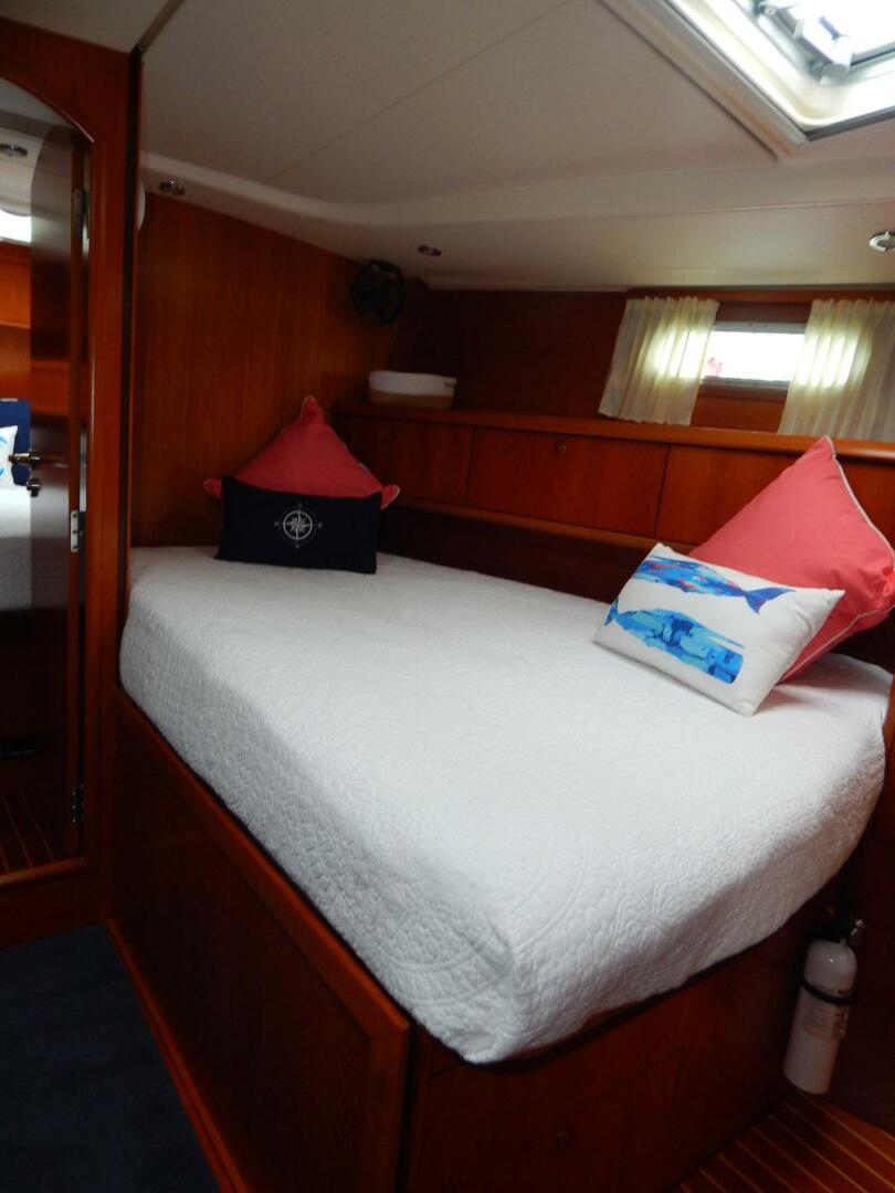 - The port upper berth folds to create a settee and large guest room; the lower berth has lee cloths