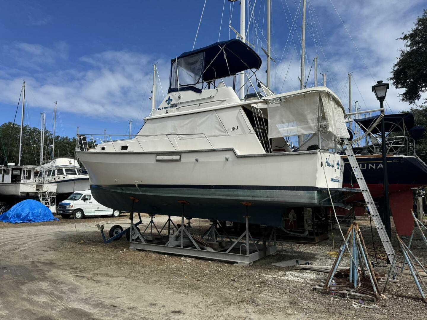 | Notable Upgrades: Bottom stripped to gelcoat & repainted (2020) Rebuilt/treated fuel tanks (2014) LED interior lighting; sound-insulated engine room New galley sink & 2-burner propane stove (2022) New salon sofa & V-berth upholstery (2023) Stainless bow rail & bridge seating (2024) |