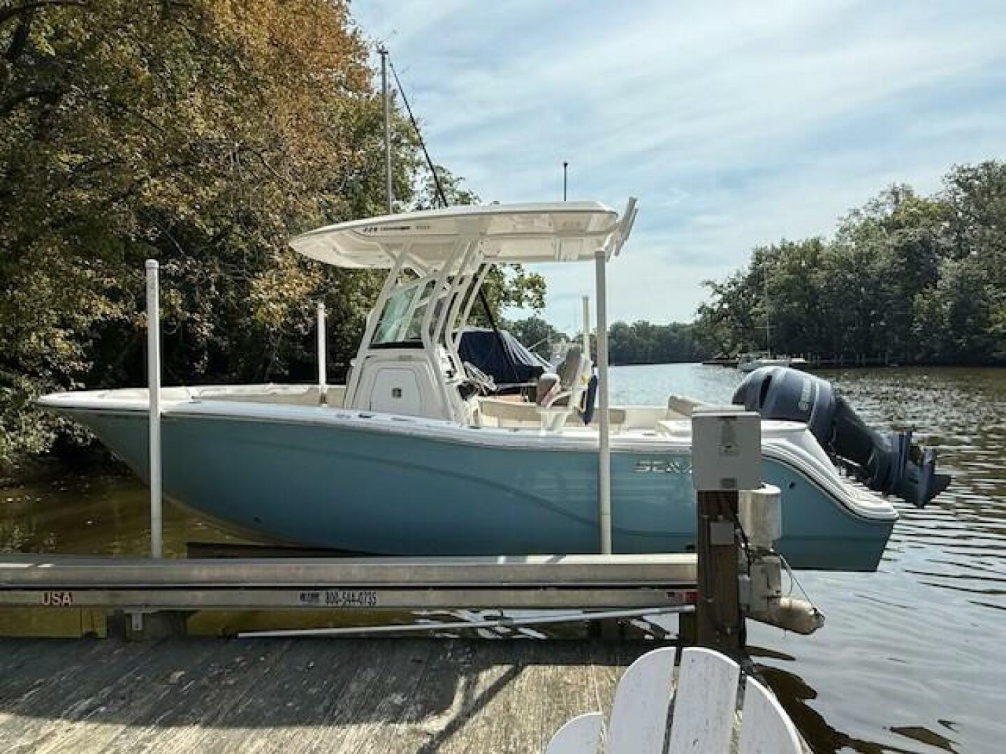 228 SEA FOX COMMANDER - WITH 200HP YAMAHA WITH ONLY 41 HOURS - LIFT KEPT - ARTIC BLUE HULL, ULTIMA HARD TOP, TITANIUM UPOLSTRY UPGRADE, PRO PACKAGE, LED/TECH PACKAGE, GARMIN 94SV, SKI TOW BAR.