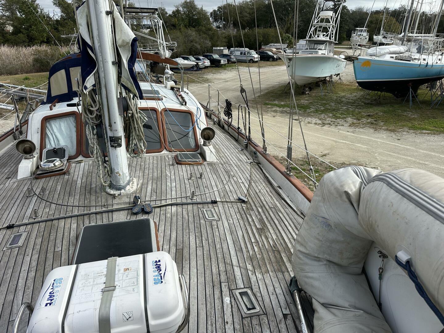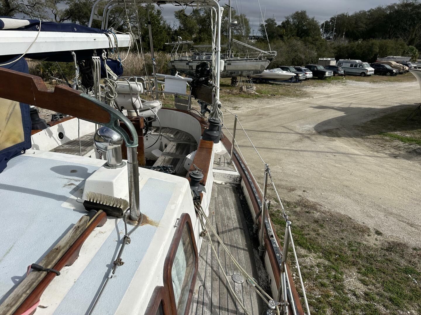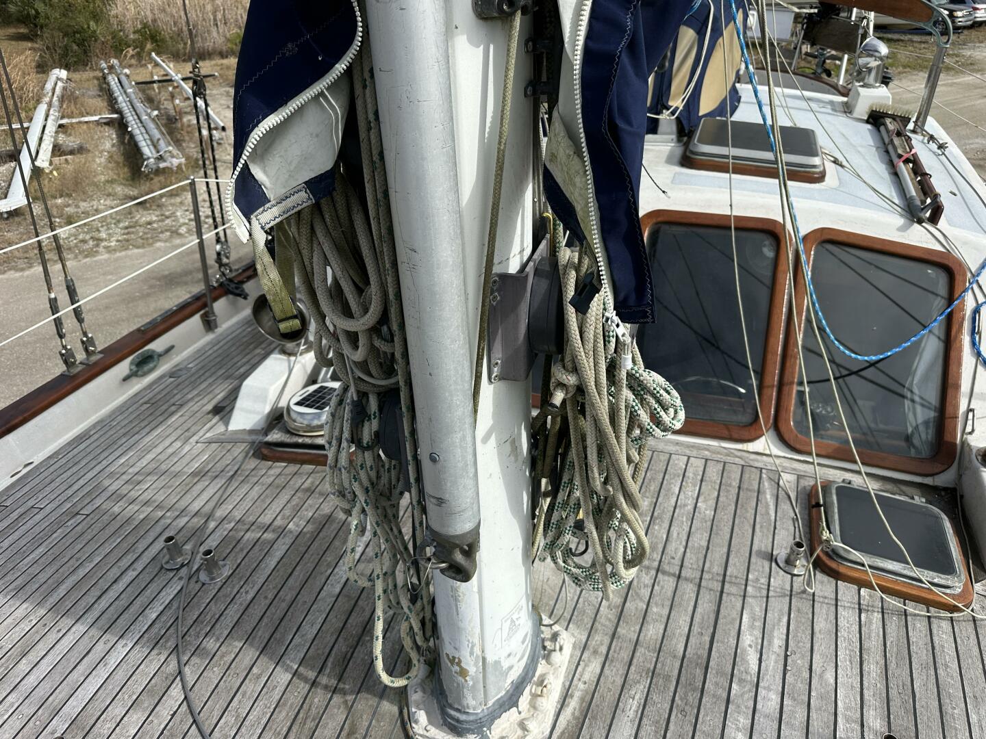 With her solid fiberglass construction, cutter-rigged sail plan, and deep, protected cockpit, this vessel is ideal for extended cruising, liveaboard life, or coastal and offshore adventures. She tracks well under sail, handles heavy weather confidently, and offers a comfortable motion at sea.