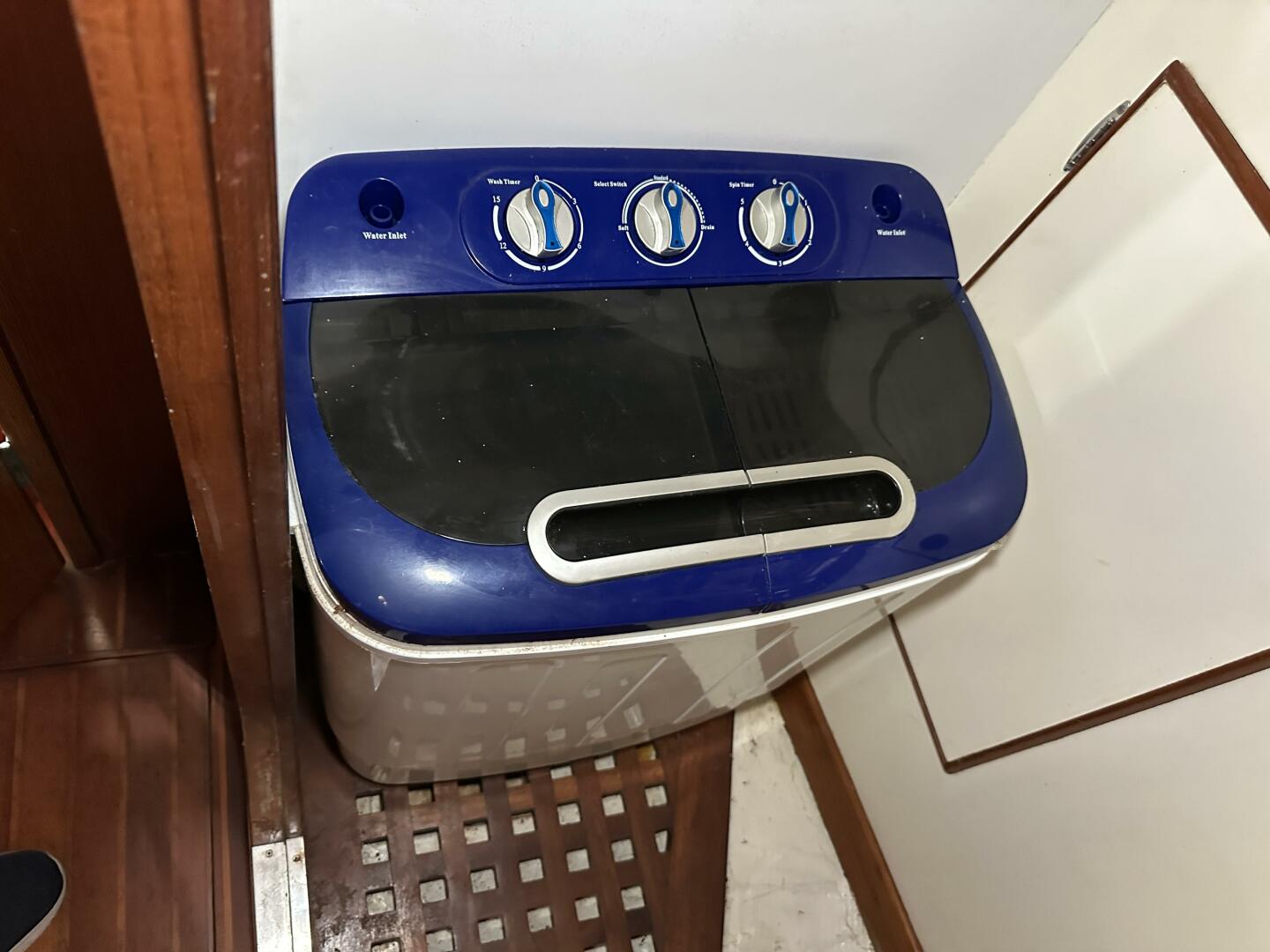 The yacht's AC system is 240 VAC and 110 VAC with a 6000 watt