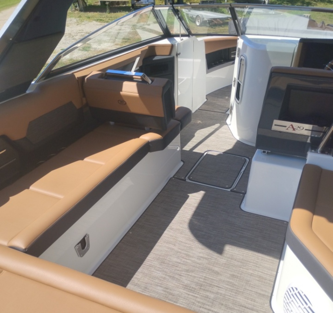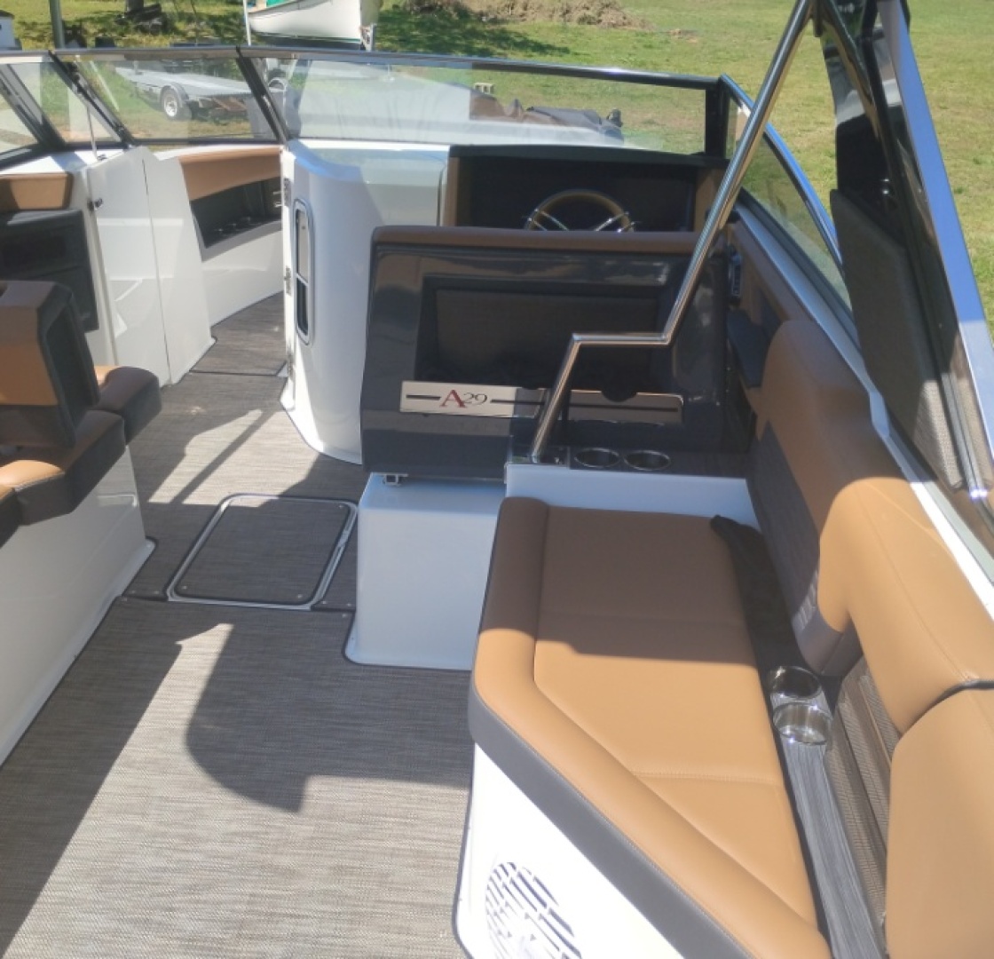 - Performance & Handling: The A29 features an extended running surface for faster planing, sharper turns, and reduced bow rise. Powered by a Volvo Penta V8-380 hp engine, it offers robust power and easy maneuverability.