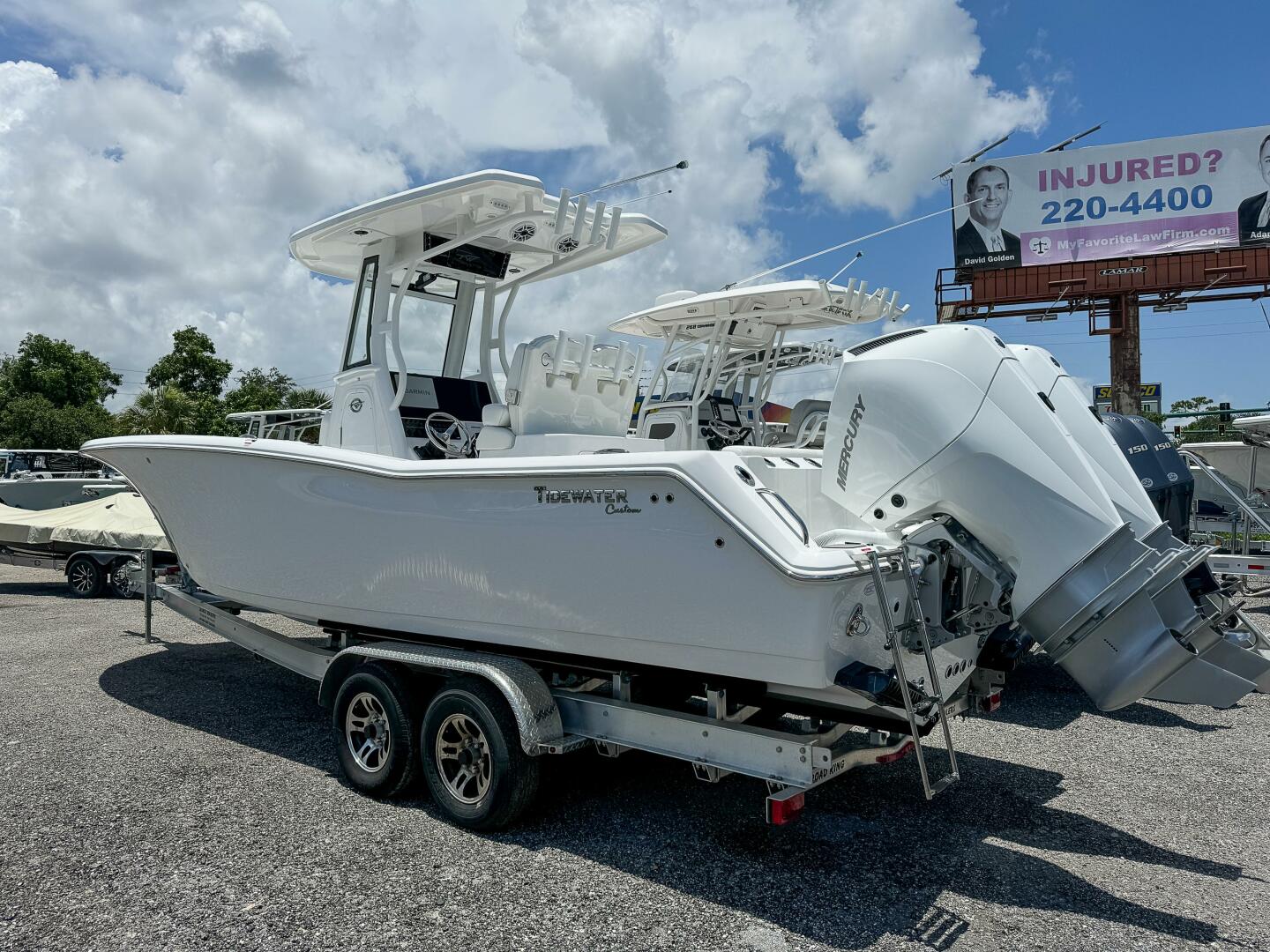The 2026 Tidewater 272CC Adventure combines offshore performance, fishability, and style with twin Mercury 200 XL engines, Garmin electronics, Super Deluxe livewell, extra rod holders, stainless steel props, and all-white cushions. Fully rigged and ready for fishing or cruising.