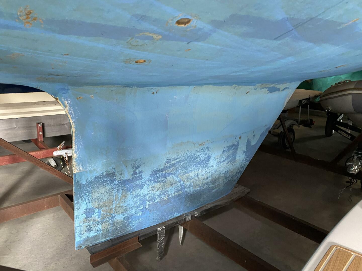 - Dark blue molded cove and boot. Smoke white hull and deck.