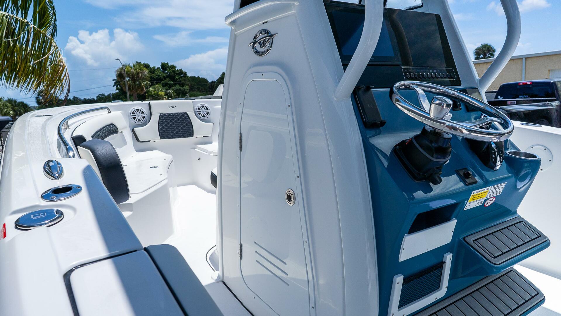 Take advantage of the Tidewater promotional upgrade—this boat comes standard with a Yamaha F250XB, but has been factory-upgraded at no extra cost to the more powerful F300XCB.
