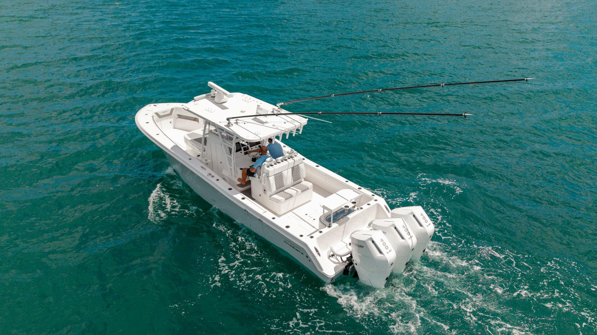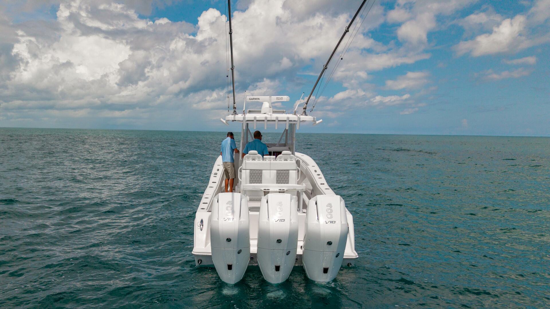 Powered by triple Mercury 400 V10 Verados with joystick control, and outfitted with premium Garmin electronics, FLIR, Gemlux outriggers, and an upgraded JL Audio system, this turn-key package blends performance, fishability, and comfort.