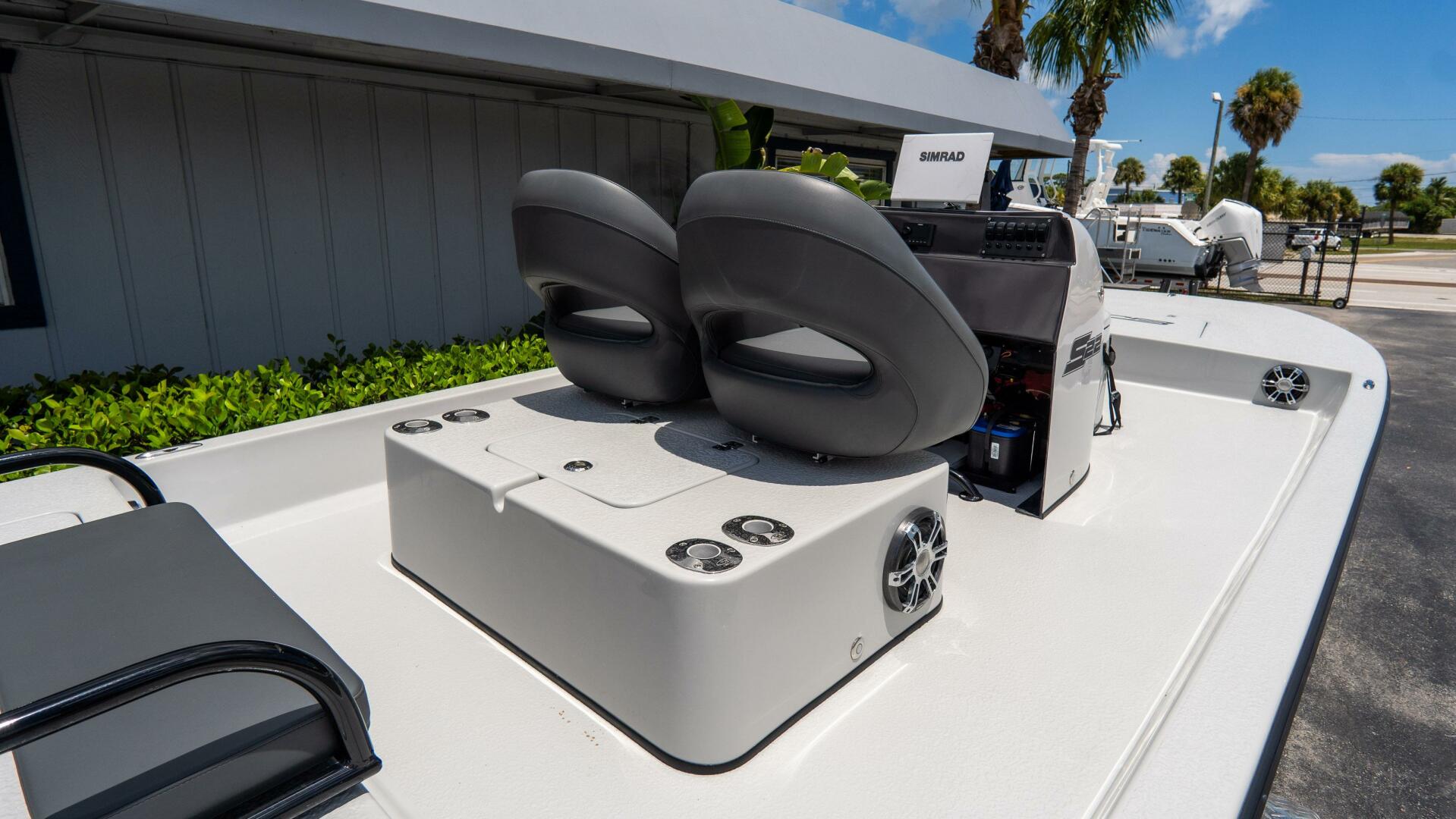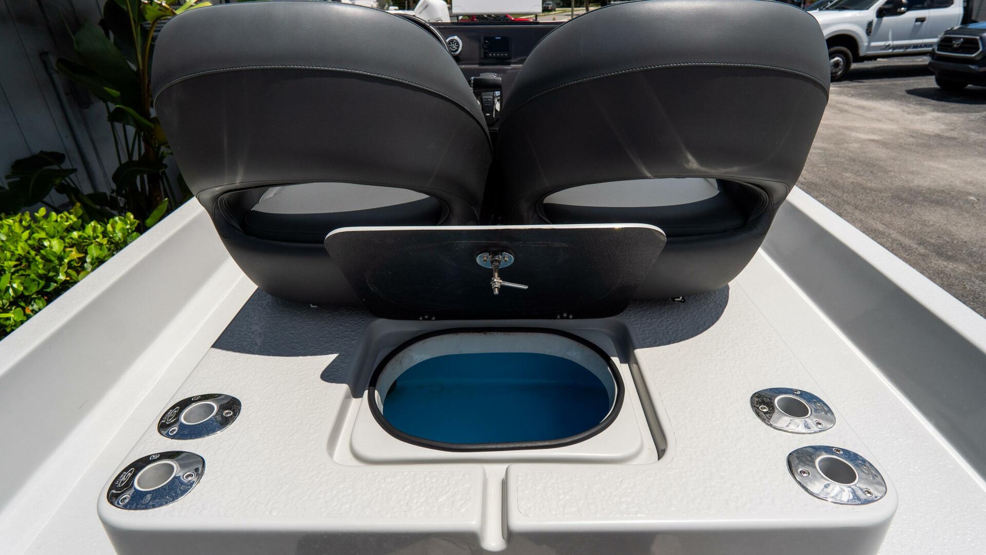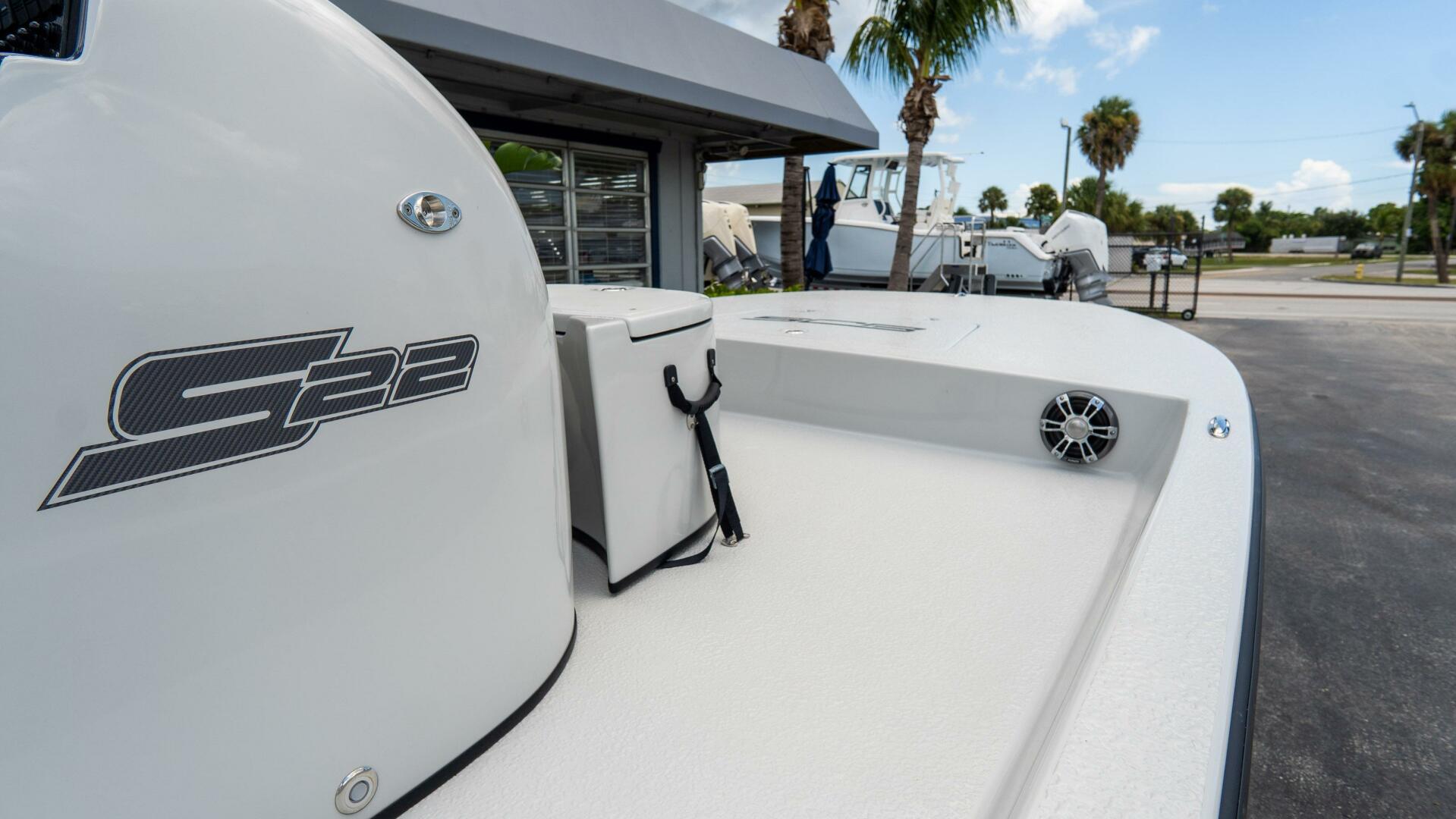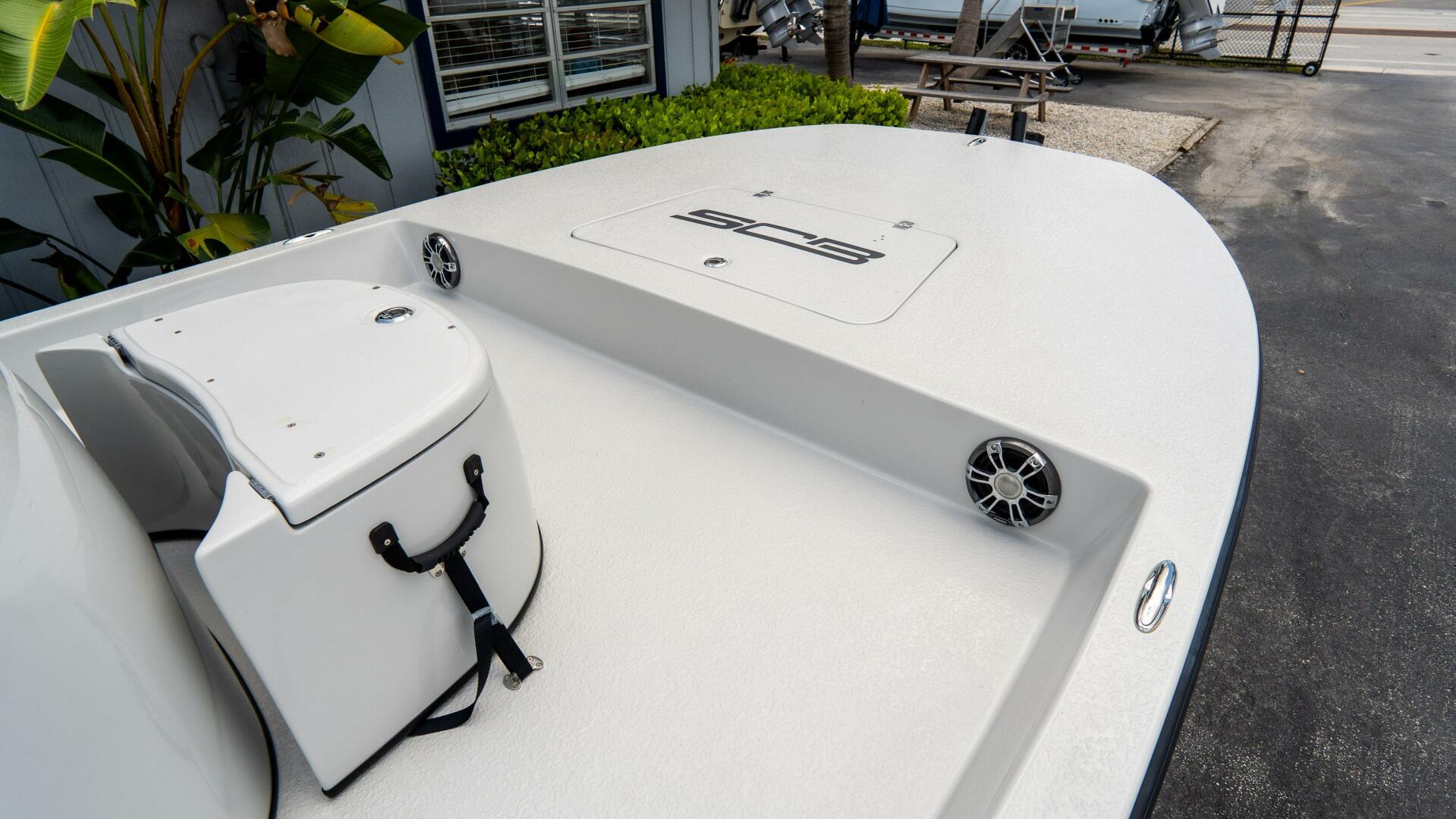 Equipped with SCB’s Bubble Console, Short Raised Console with Rear Livewell, and a removable rear bench seat, this S22 is designed for versatility, comfort, and inshore performance. The SCB fiberglass cooler (45 or 90 qt) with strap kit adds convenience for long days on the water.