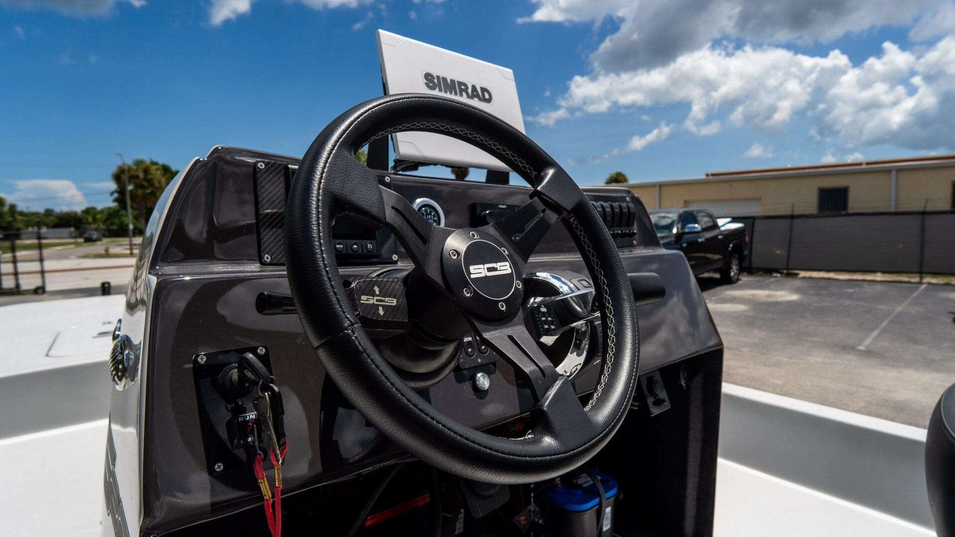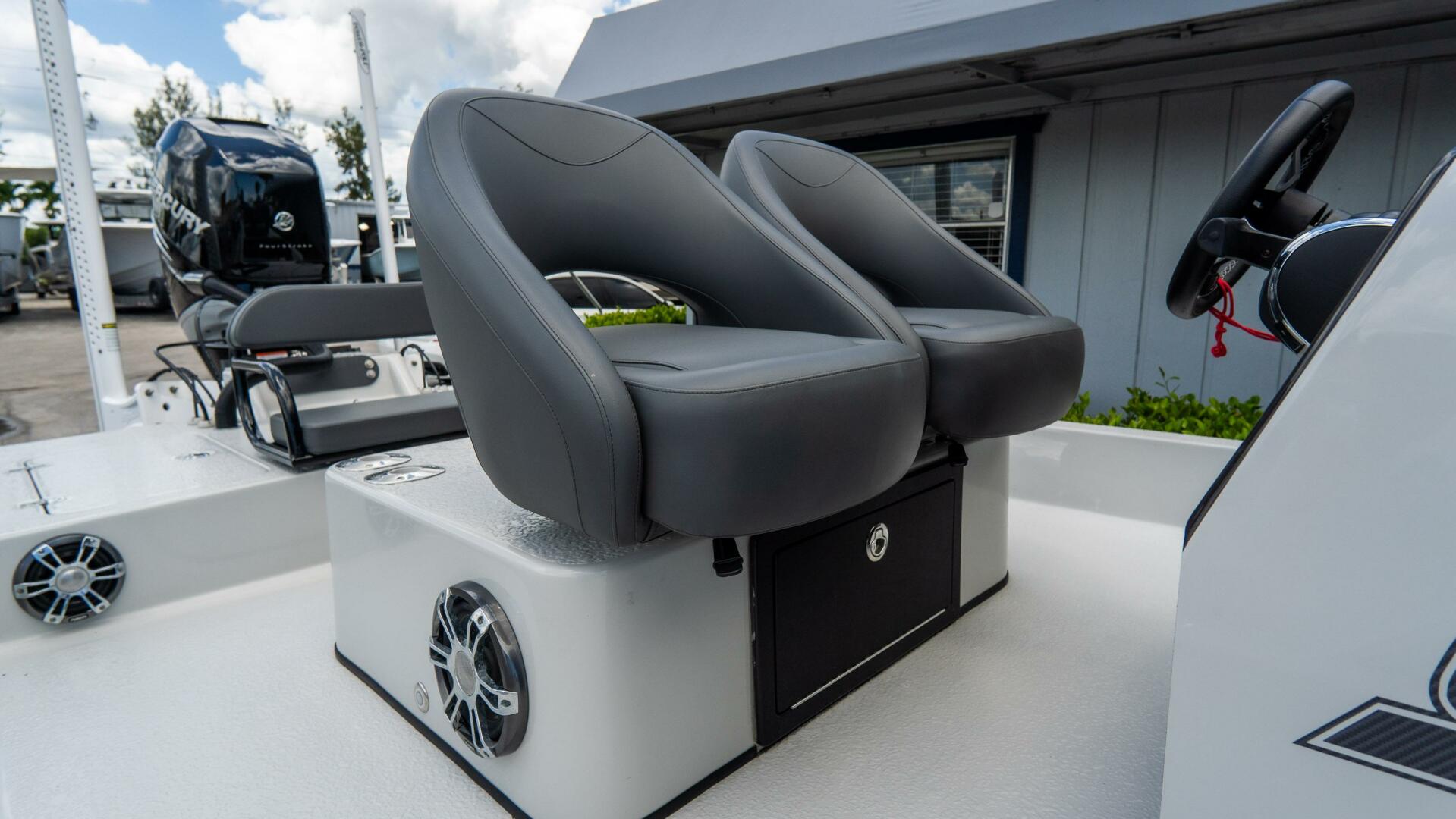 - Mercury Pre-Rig: Power-assisted steering, jack plate, helm, steering wheel, and full engine rigging