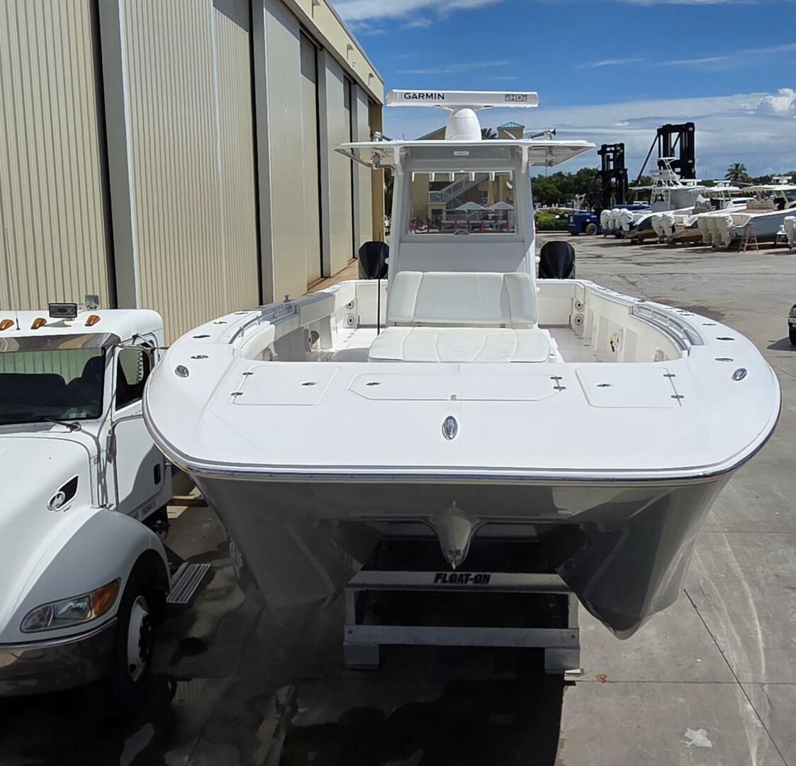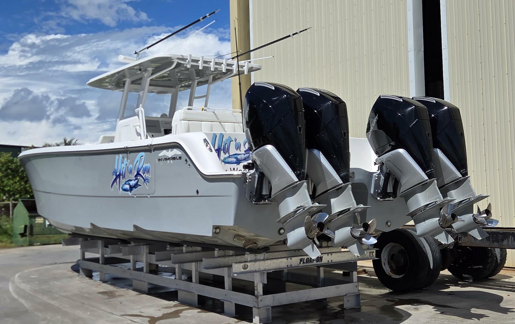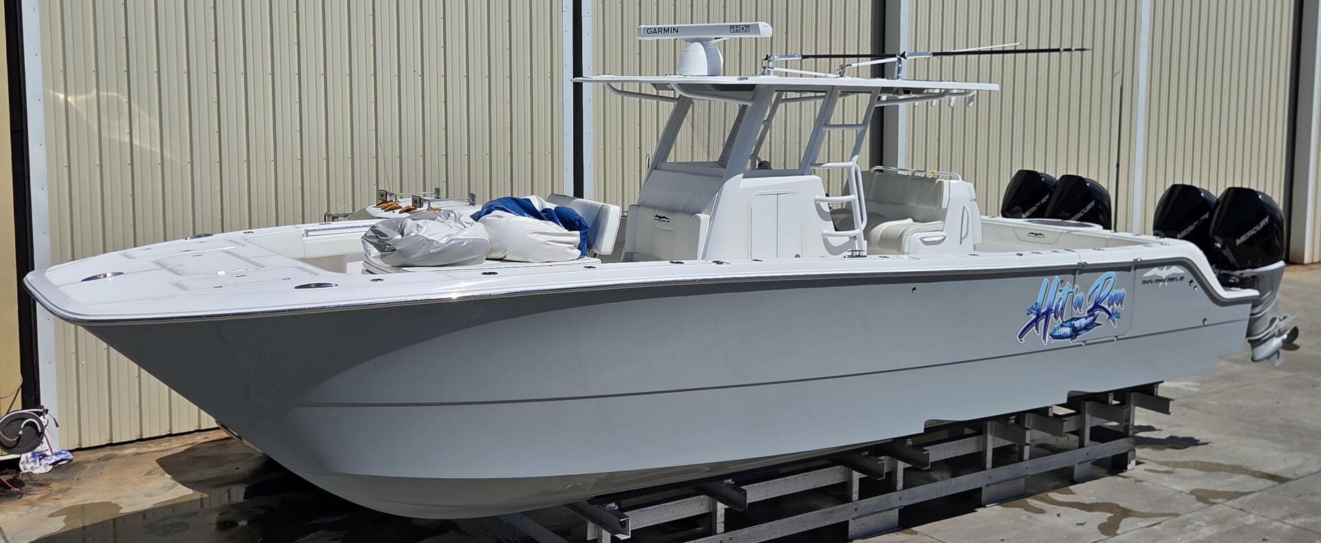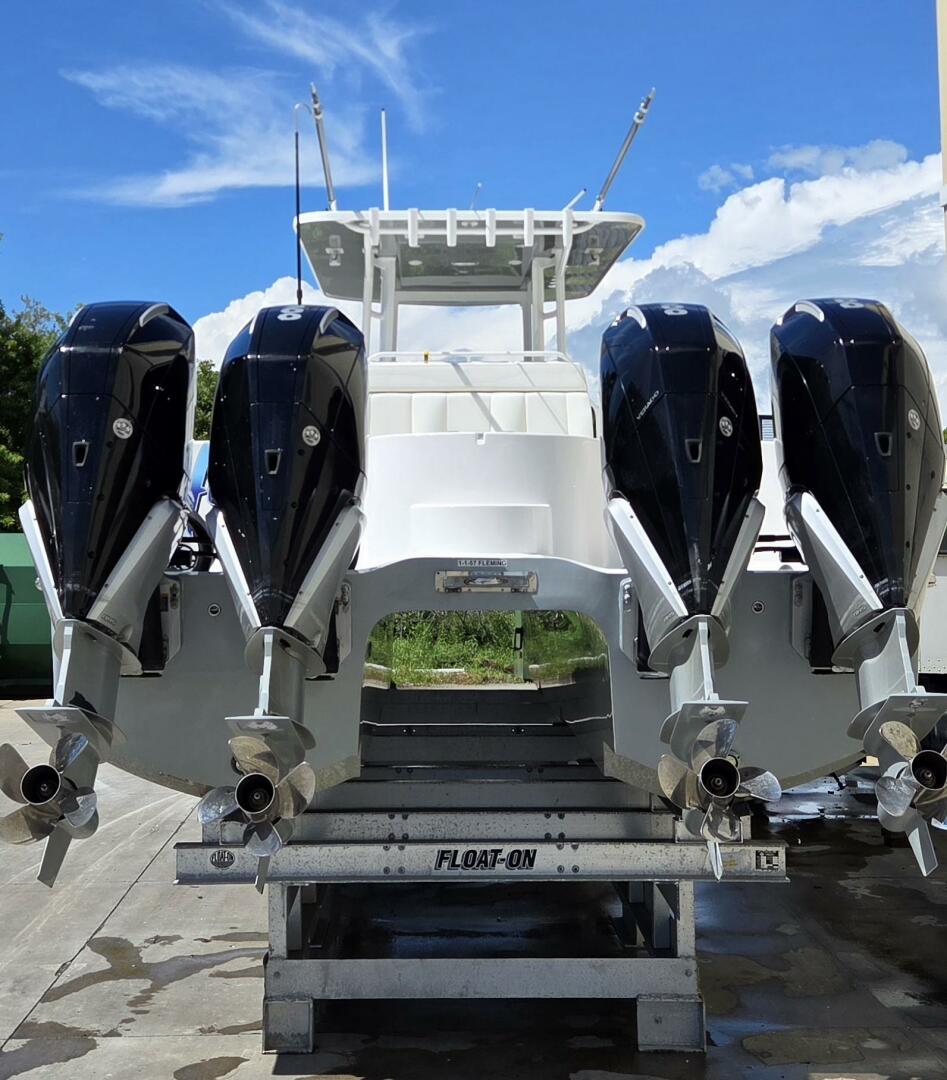 The spacious cockpit is versatile and perfect for tournament fishing, family outings, or cruising. With quad 300 hp outboards, substantial fuel capacity, and a purposeful layout, this vessel is ready for offshore adventure.