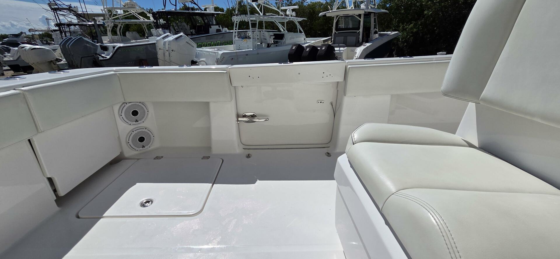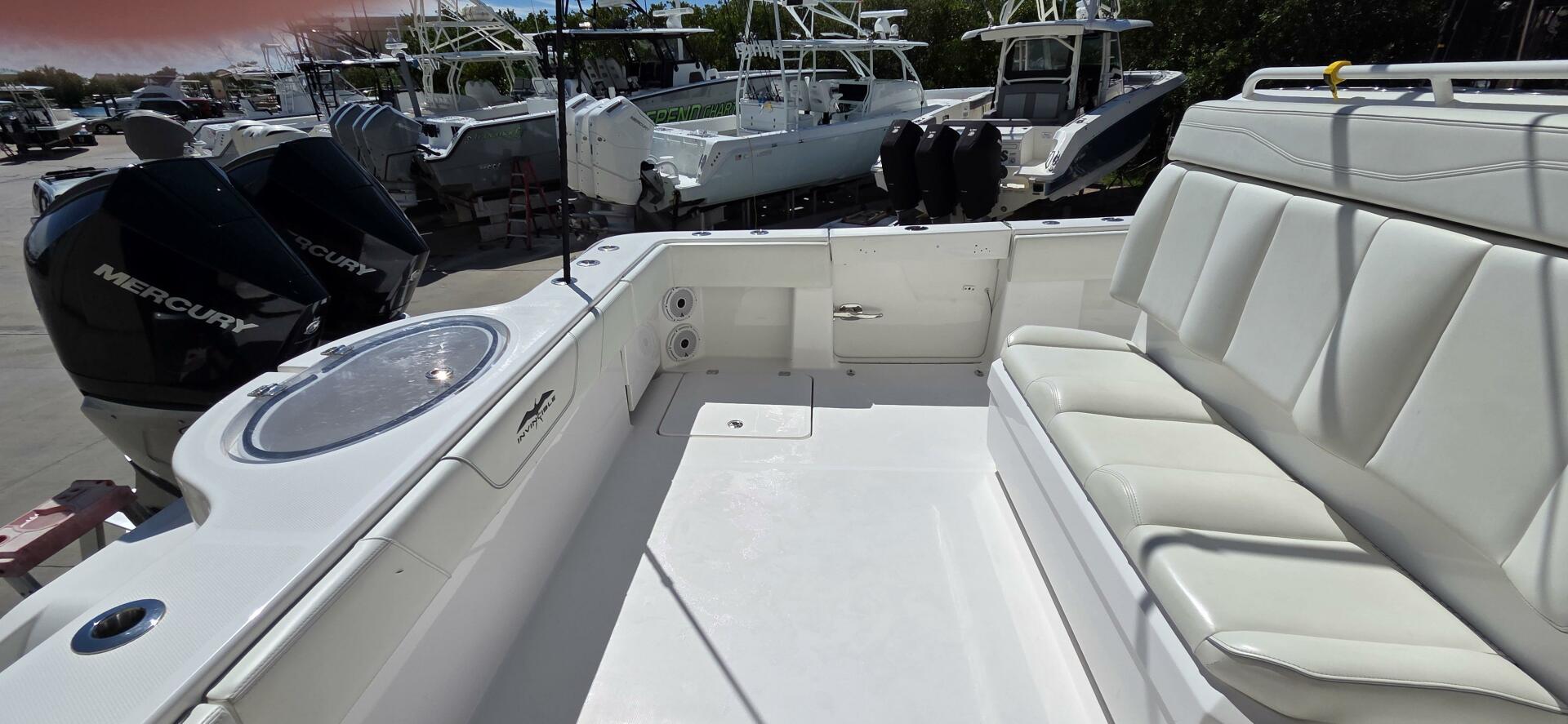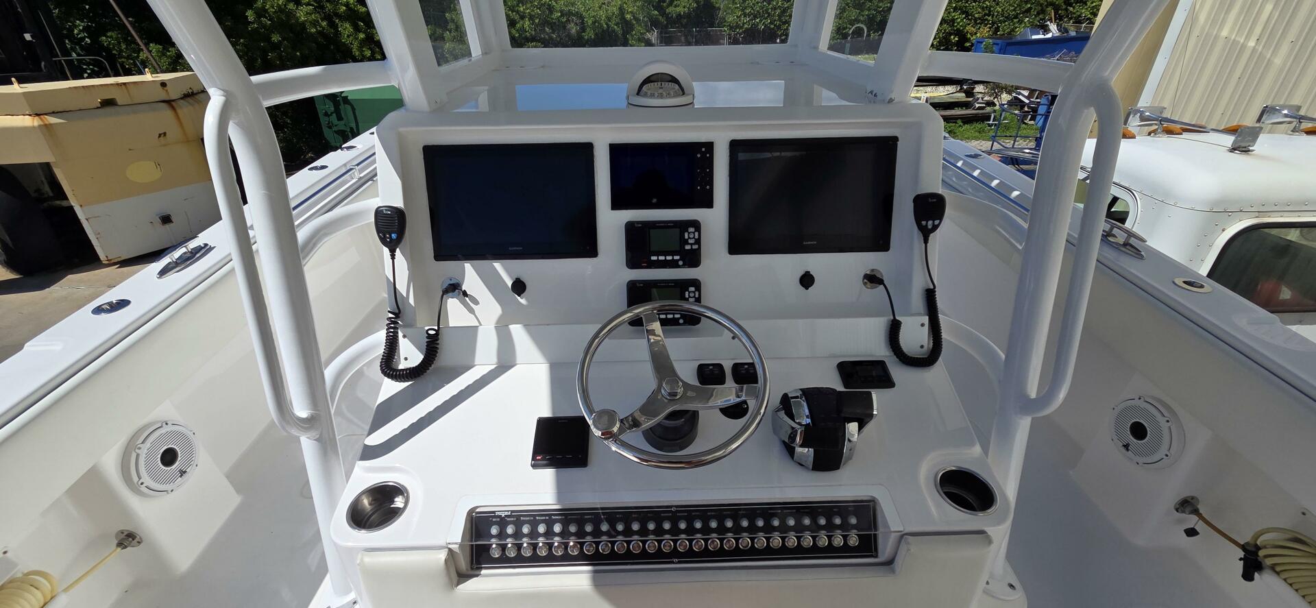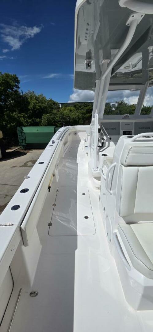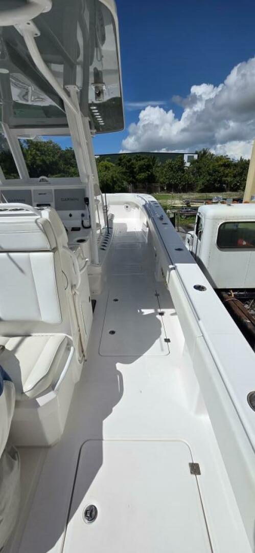 The spacious cockpit is versatile and perfect for tournament fishing, family outings, or cruising. With quad 300 hp outboards, substantial fuel capacity, and a purposeful layout, this vessel is ready for offshore adventure.