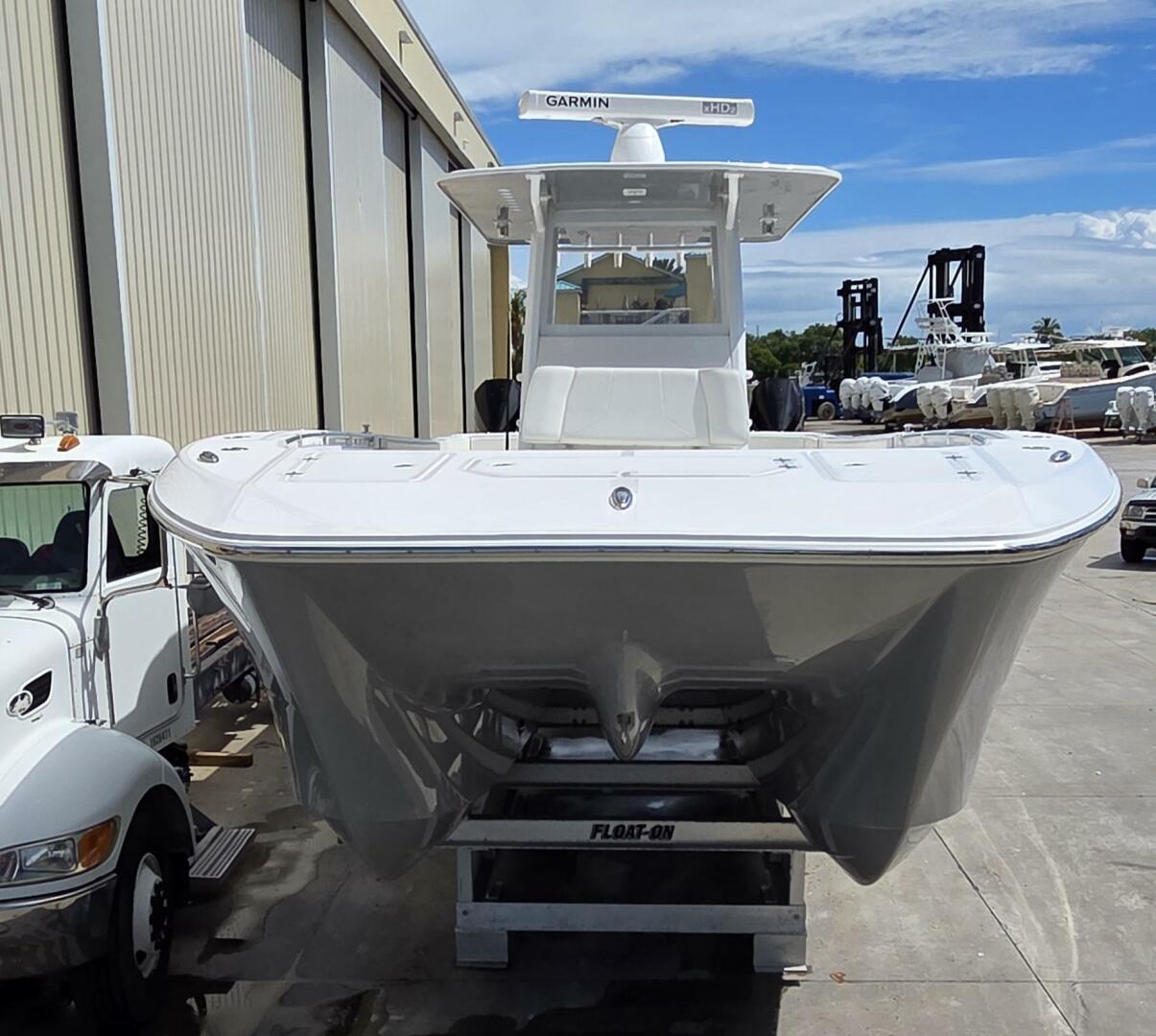 Take advantage of this well maintained offshore fishing catamaran that has been kept in covered storage its whole life. Many premium options including Duel Garmins, Side Dive Door, Massive Fishing Space, and Dependable Mercury 300's. Custom storage cradel included.