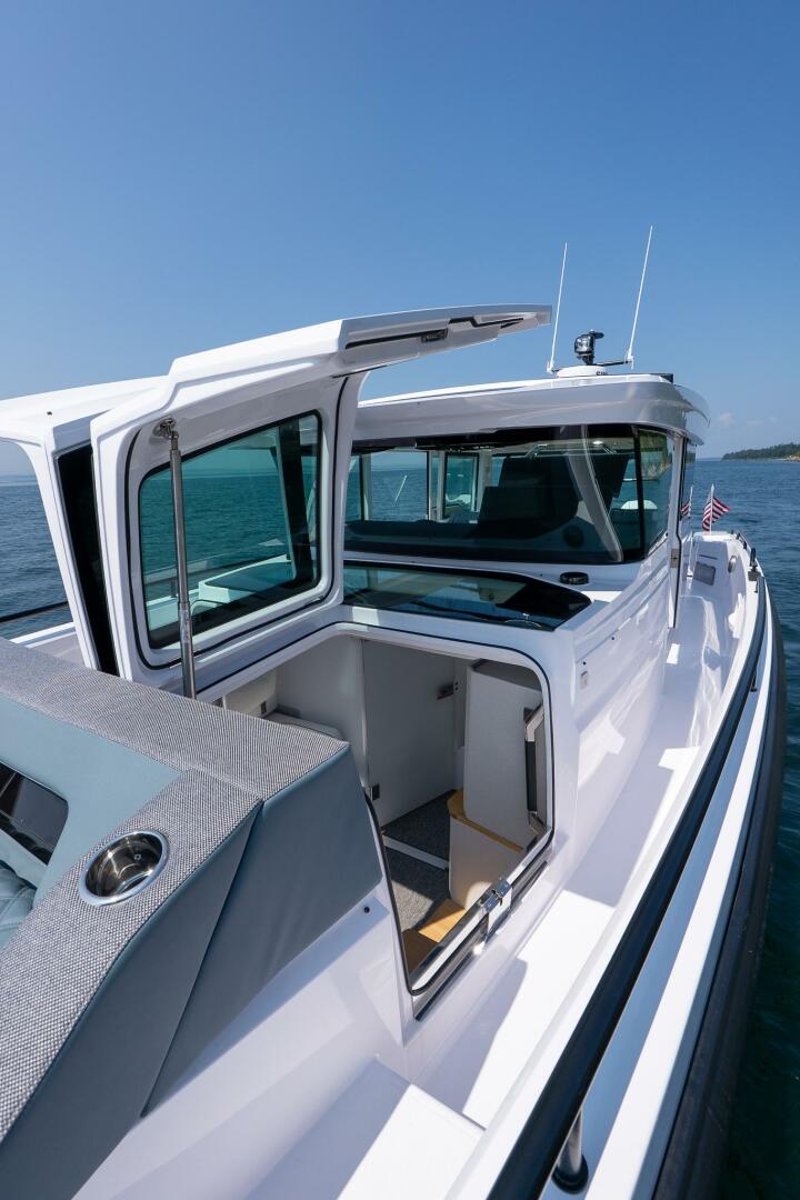 This Axopar 37 Aft Cabin will be available in Spring 2026 She's equipped with Joystick docking and a separate head compartment along with the streamlined Axopar 37 foundation making it easy to set off for Adventure!