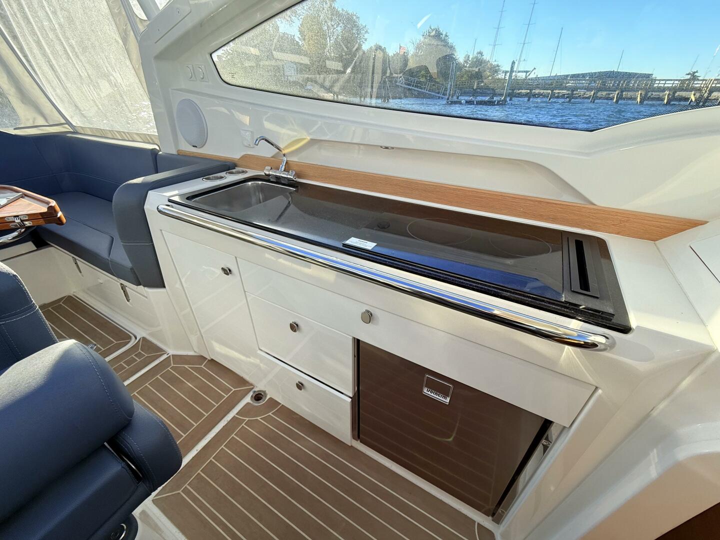 Designed with Nimbus’s signature Sidewalk layout, the W9 provides secure, open walking spaces around the deck, enhancing both safety and comfort underway. The spacious cockpit includes a large L-shaped sofa that transforms into a sunbed, while the foredeck offers another lounging area for relaxation. Features such as a fully equipped galley with a 65-liter refrigerator and cooktop, a separate head with wash basin, and thoughtful design details make it ideal for extended day trips or spontaneous weekend getaways.