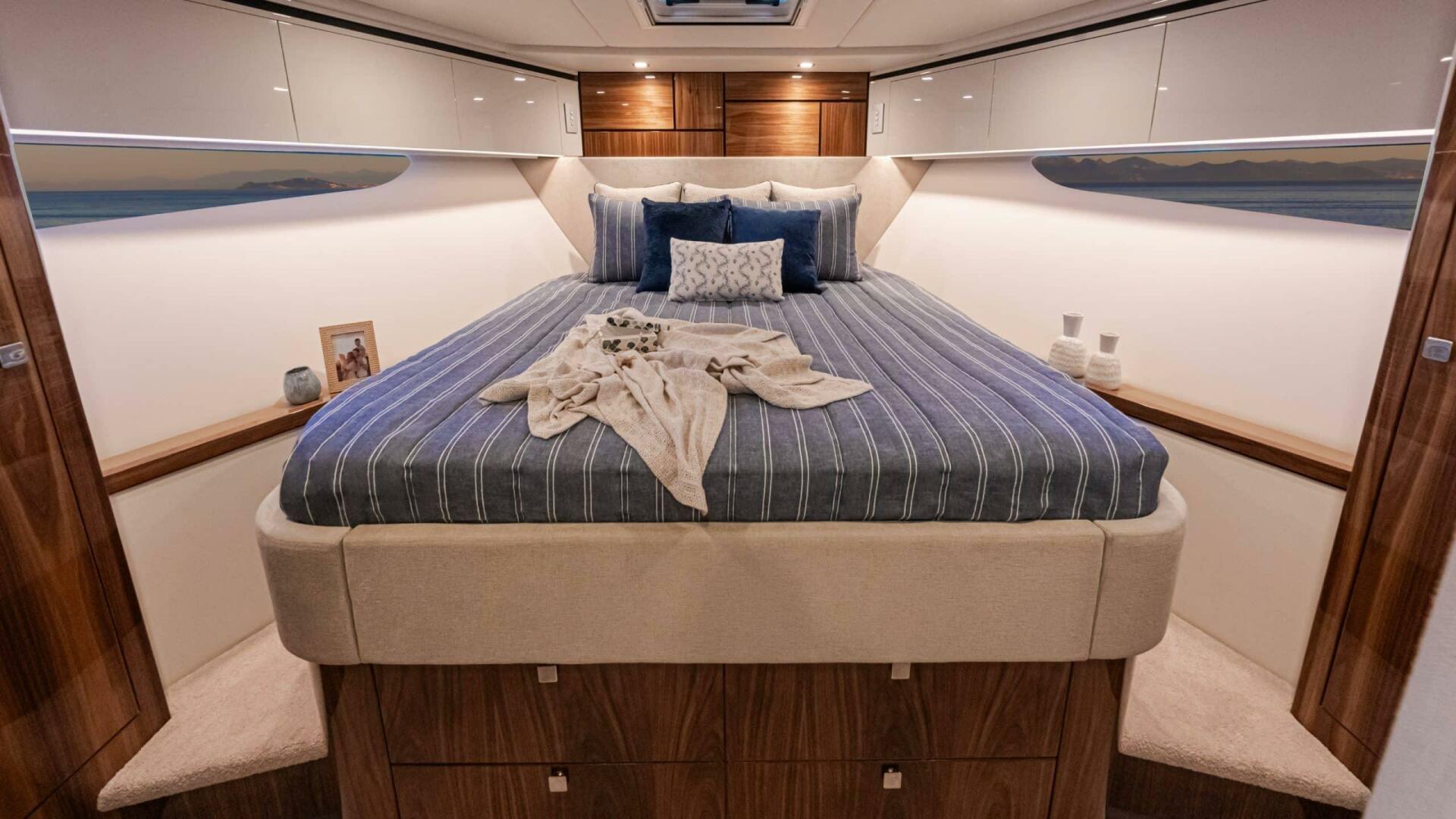 Perfect for a long-range adventure or a weekend away; with a choice of 3 or 4 staterooms and three bathrooms, a crew cabin or utility laundry, a full-height walk-through engine room and an impressive tender garage devoted to water sports.