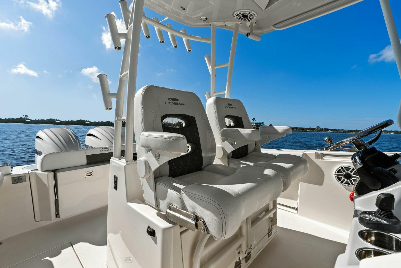 The 2023 Cobia 301 Center Console - seamlessly blends offshore performance with family-friendly comfort. Built on a proven deep-V hull, it delivers a smooth, dry ride in all sea conditions while maintaining exceptional stability at rest. With its spacious layout, advanced helm design, and abundant storage, the 301 is equally suited for serious fishing or all-day cruising. Premium finishes, top-tier electronics, and thoughtful amenities—such as Seakeeper RIDE trim system make this Cobia 301 a comfortable and versatile vessel that excels in both functionality and style.