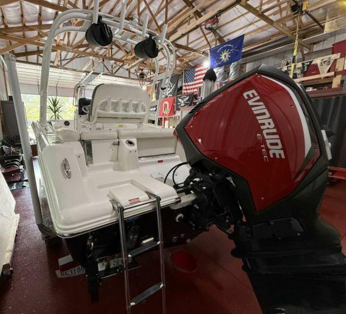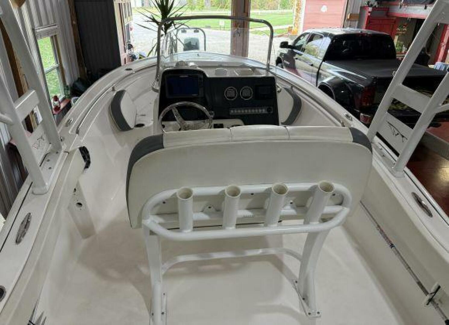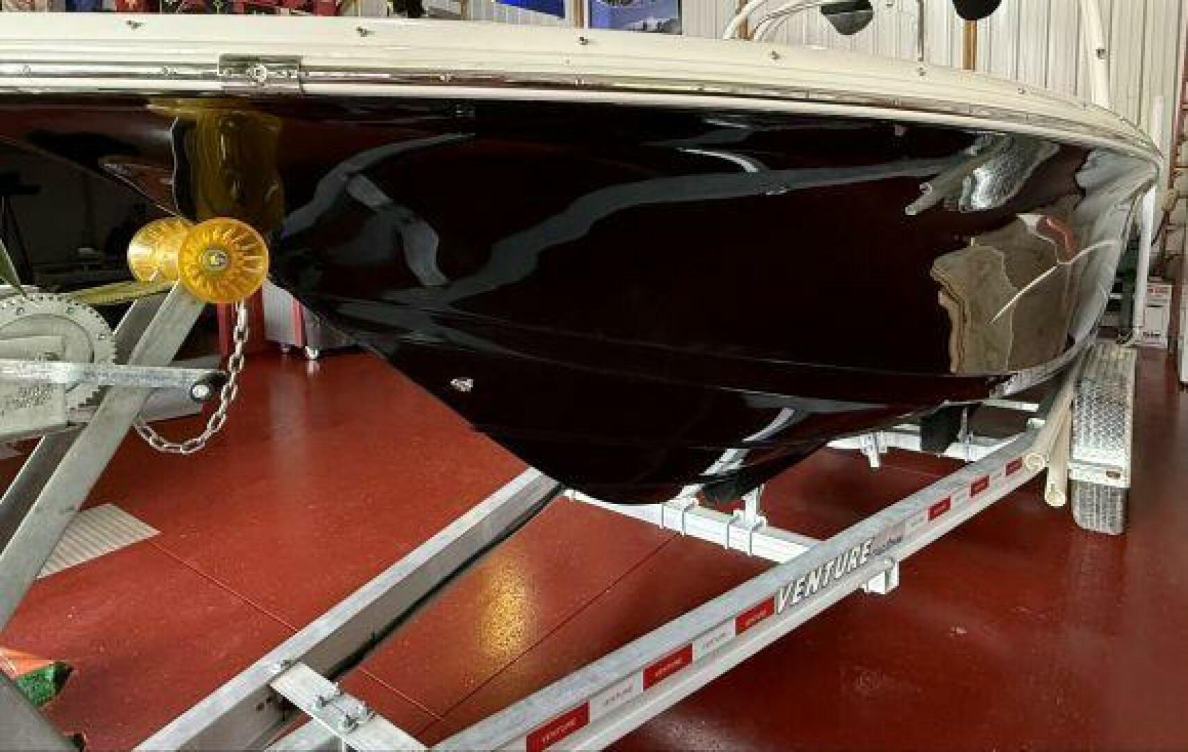 This versatile 21-foot center console boat is in excellent condition and has had only one owner. It has been stored in a heated garage, with cushions like new wrapped in plastic. The sale includes a Venture trailer. Powered by a reliable 150hp Evinrude E-Tech engine with approximately 100 hours of use, this boat is ready for both fishing and water sports. It comes equipped with a full sound system and a Lowrance HDS9 fish finder/chart plotter for enhanced navigation and fishing capabilities. Whether you're casting lines or enjoying time on the water with family, this boat offers the perfect blend of performance, comfort, and versatility.