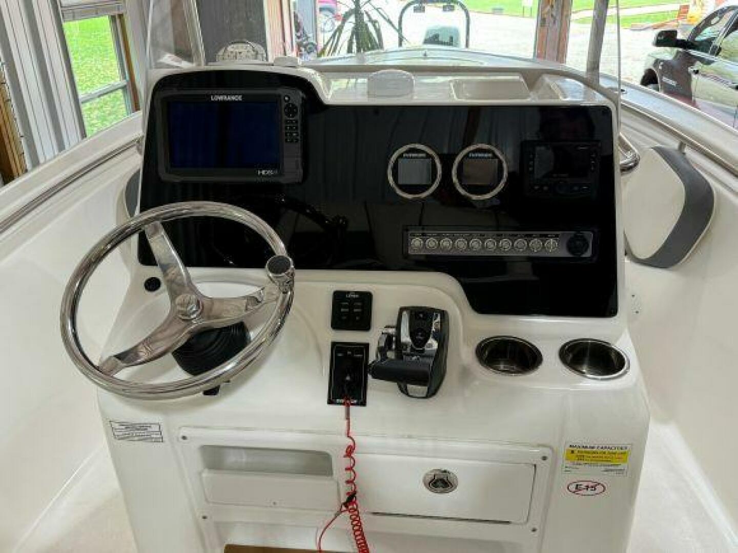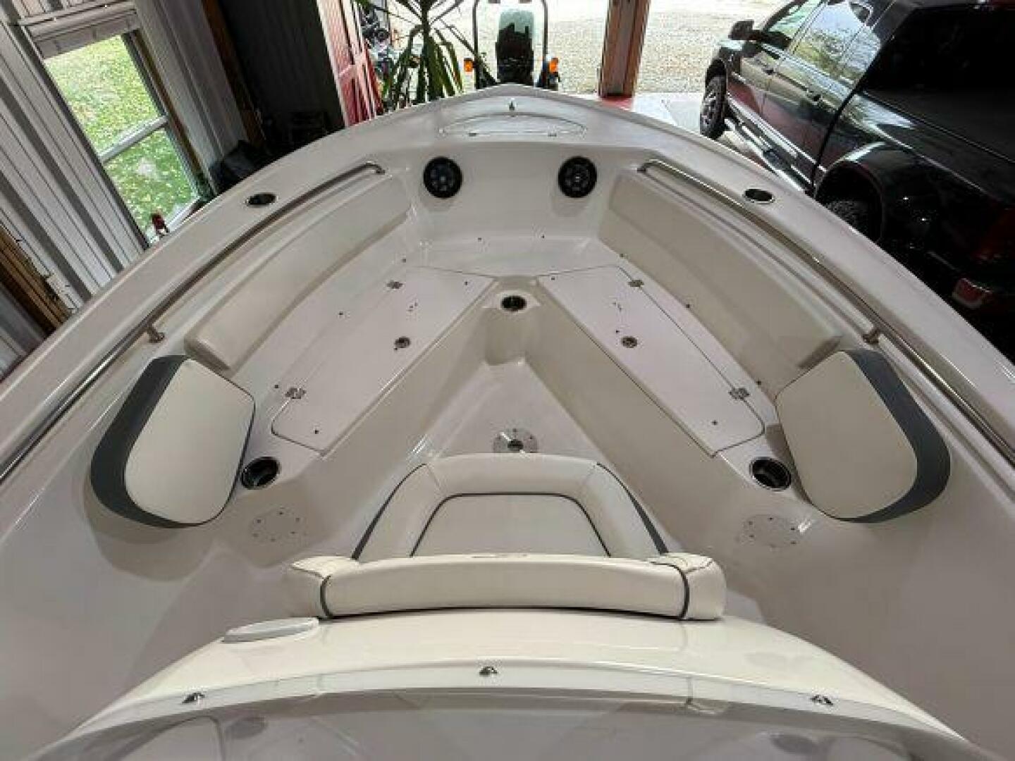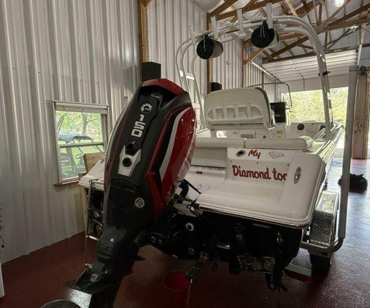 This versatile 21-foot center console boat is in excellent condition and has had only one owner. It has been stored in a heated garage, with cushions like new wrapped in plastic. The sale includes a Venture trailer. Powered by a reliable 150hp Evinrude E-Tech engine with approximately 100 hours of use, this boat is ready for both fishing and water sports. It comes equipped with a full sound system and a Lowrance HDS9 fish finder/chart plotter for enhanced navigation and fishing capabilities. Whether you're casting lines or enjoying time on the water with family, this boat offers the perfect blend of performance, comfort, and versatility.