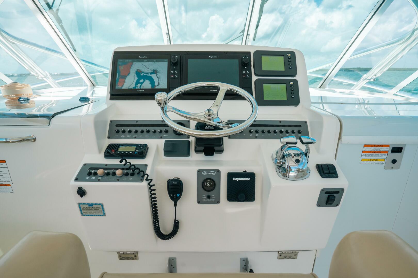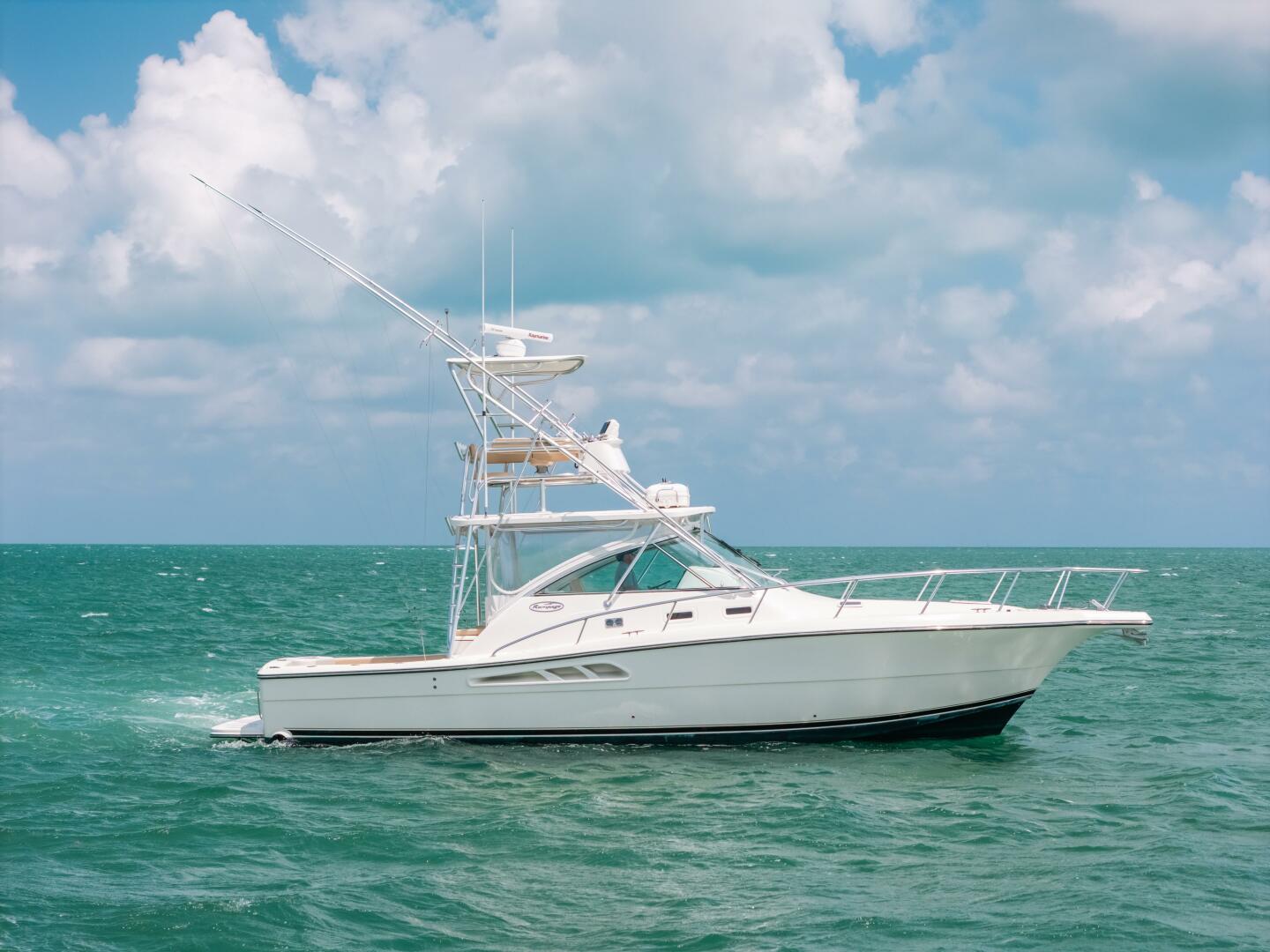 In addition, you will enjoy a large cockpit with transom livewell, walk-through transom door, under-deck fish boxes, and tackle stations. This boat is kept in detailed condition and shows well.