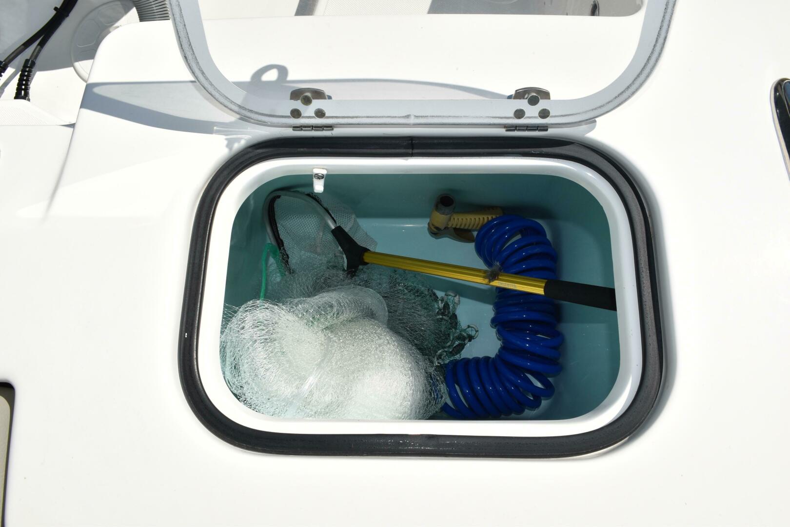 - Fish Boxes (28 gallons each), In-Floor, Insulated and Diaphragm Pump with Overboard Discharge (Port and Starboard)
