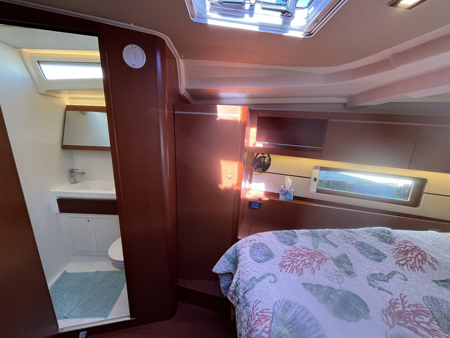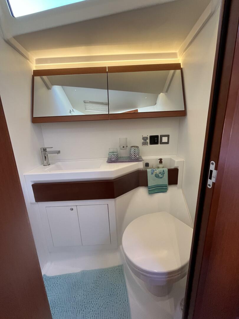 - Aft Head w/ separate shower; doors from salon and aft cabin, starboard