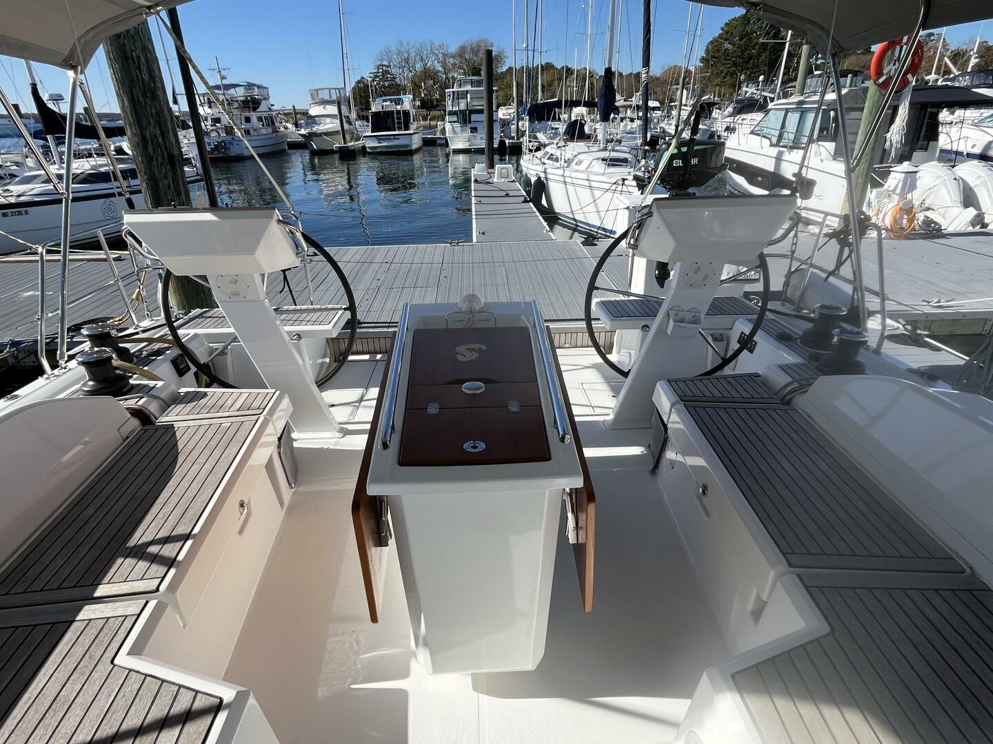 - Cockpit bench extensions w/ halyard bags below