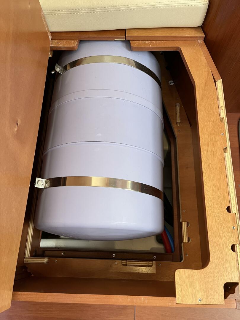 - Propane locker, port aft (accommodates 2 x 10lb tanks)