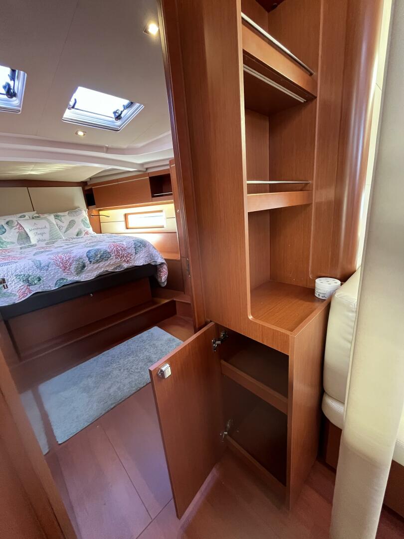 - Bookshelf & storage cabinet on forward bulkhead, starboard