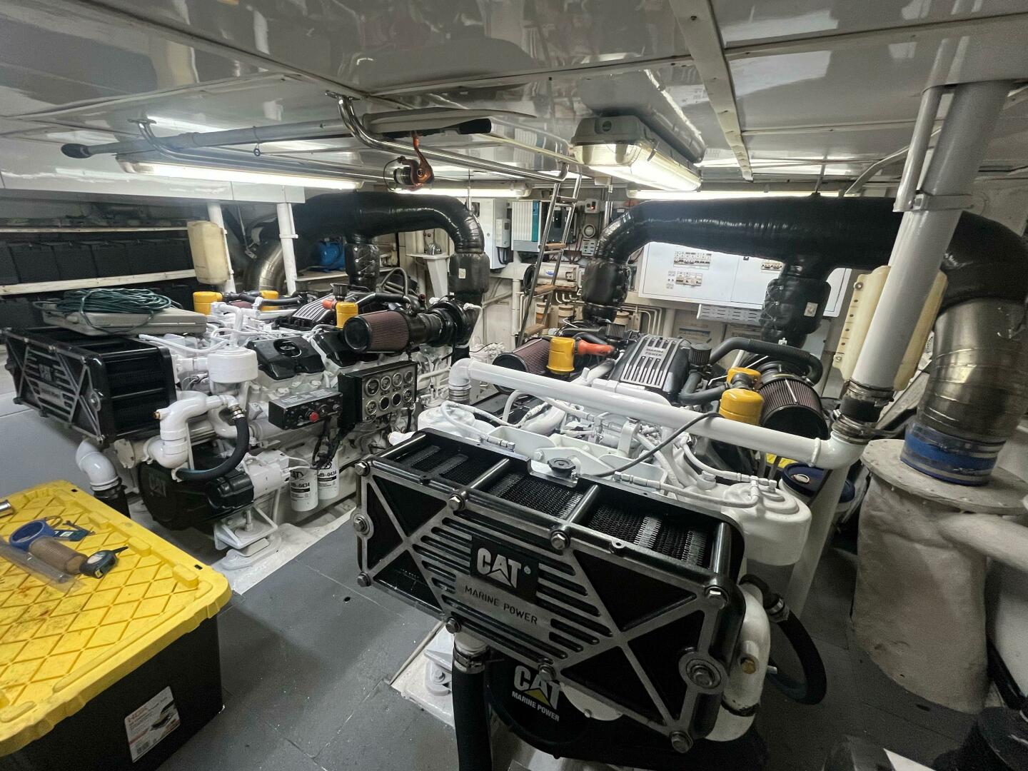 Powered by twin Caterpillar 3412s (1,400 hp each), the yacht cruises effortlessly and reaches speeds up to 34 knots. The engines recently completed the 1,000-hour service, and a comprehensive engine and generator service was finished in June 2025.