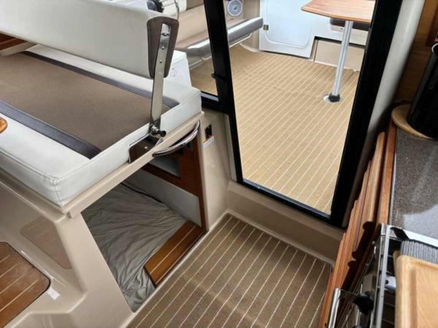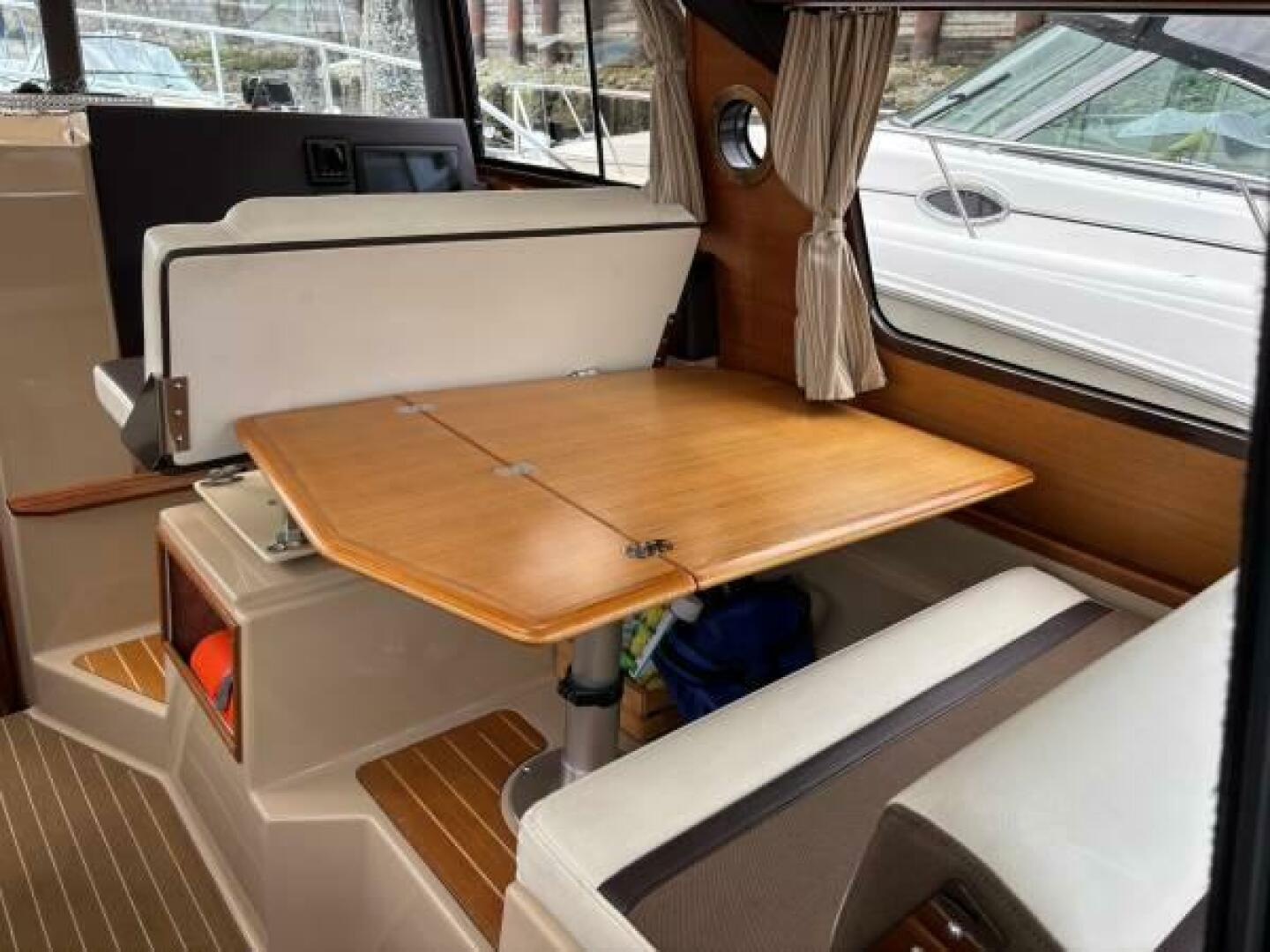 The Ranger R-29 S (Sedan) is another masterpiece of innovation! The contemporary styling features a curved front window and an overhead glass atrium that provides exceptional visibility from the helm station and salon area. An interactive aft cockpit seating arrangement includes a reversible seat, port and starboard jump seats and a teak table for outside dining. The opening cabin bulkhead with reversible seat also provides additional cockpit seating while bringing the outside-in.