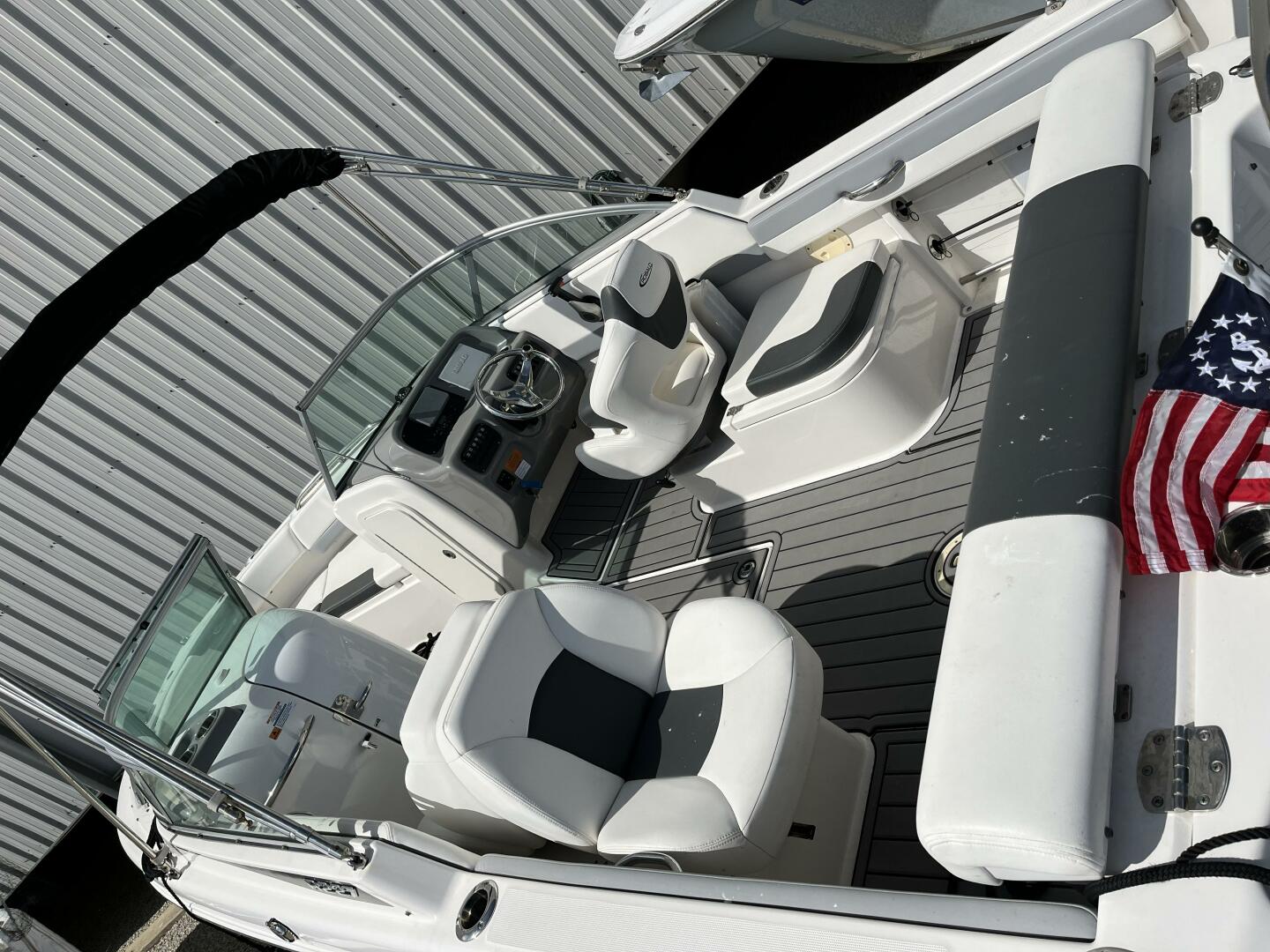 The Robalo R227's are built to fully maximize space. At the bow the R227 model offers wrap around seating, or the ability to transform to a fishing platform at ease. Enjoy the walk-thru windshield that provides accessibility from bow to stern without blocking a breathtaking view! AQUAtraction in the color gray is a special upgraded feature for comfort on the deck! This beauty has been kept in dry covered storage to protect from the elements. The Bimini top will protect the captain and his crew from the sun rays, or fold it down to enjoy open skies.