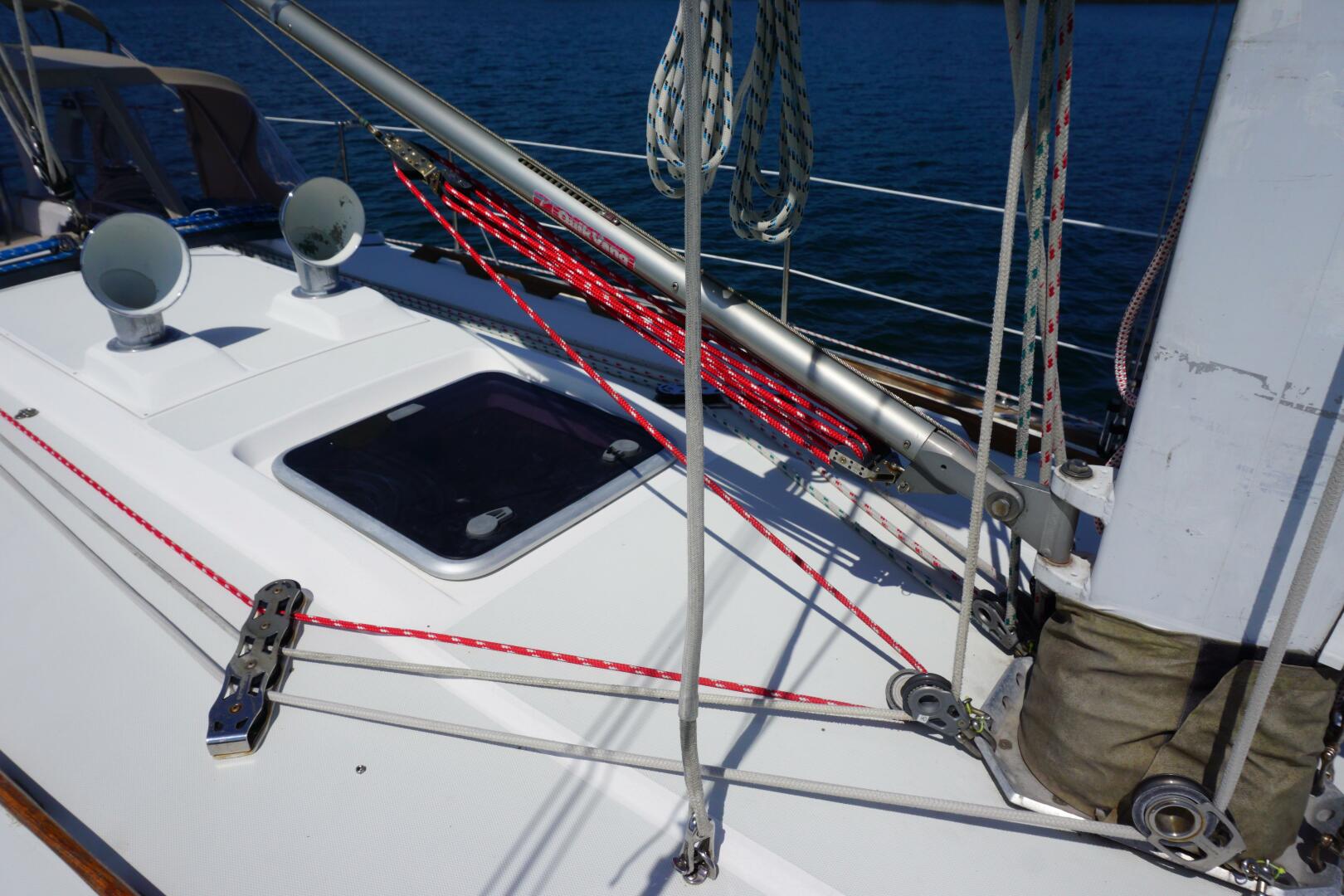 She’s got the factory deck fitting to install a baby stay for cutter rig.