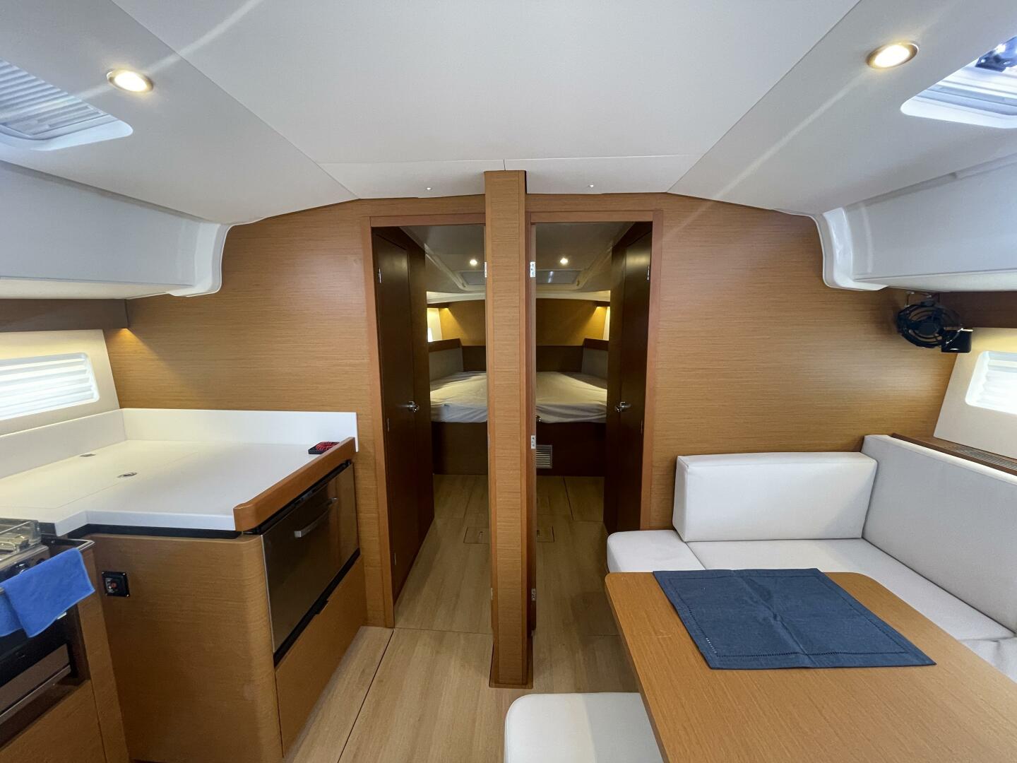 • Fully upholstered hull sides and large rectangular double berths