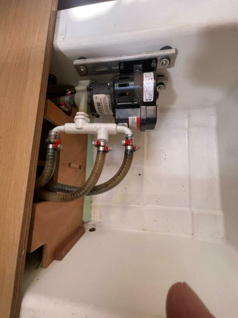 • Foot pump in galley (seawater/freshwater)