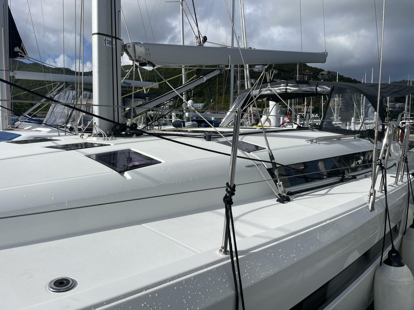 Oh Brother is professionally managed, privately owned 2022 Jeanneau Sun Odyssey 490 that has never been chartered. Her current and original owners have used the boat privately however her layout and features make her also a great candidate for one of the many charter companies here in the BVI. This could provide a buyer with income to offset the costs of ownership. The boat shows like new with very light use throughout. Designed by Philippe Briand, this 49-foot yacht combines sleek performance with modern cruising luxury. Below deck, she offers a 4-cabin, 4-head layout with teak finish and bright, airy spaces. Both forward cabins are identical in size, each featuring a large double berth, storage, and private head, while the two aft cabins include double berths with en-suite heads and generous storage. The spacious saloon is complemented by a comfortable bench, large dining table, interior speakers, USB outlets, and abundant storage. The U-shaped galley is fully equipped with dual refrigeration, Corian countertops, double stainless-steel sinks, 3-burner stove, and ample soft-close drawers and cabinets—perfect for extended cruising or liveaboard comfort.