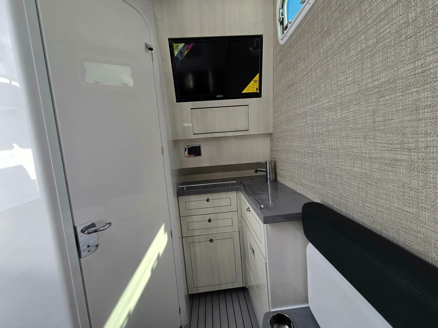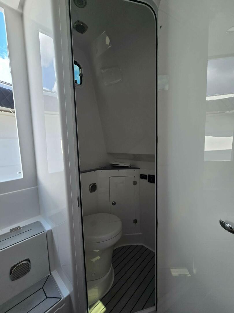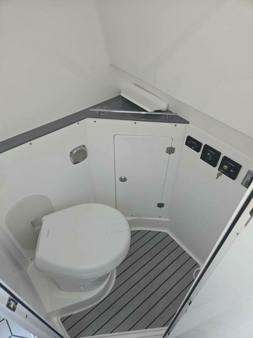 · Cabin – Enclosed Head Compartment with Ceramic Macerating Starboard side, Electric Flush Toilet with pump out and Pull Up Shower.