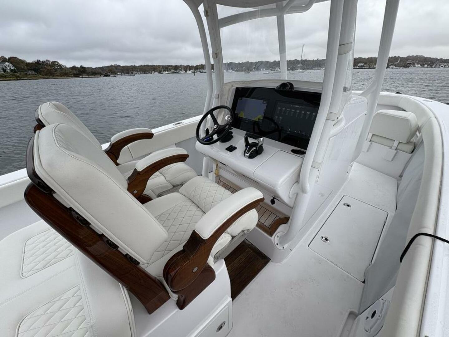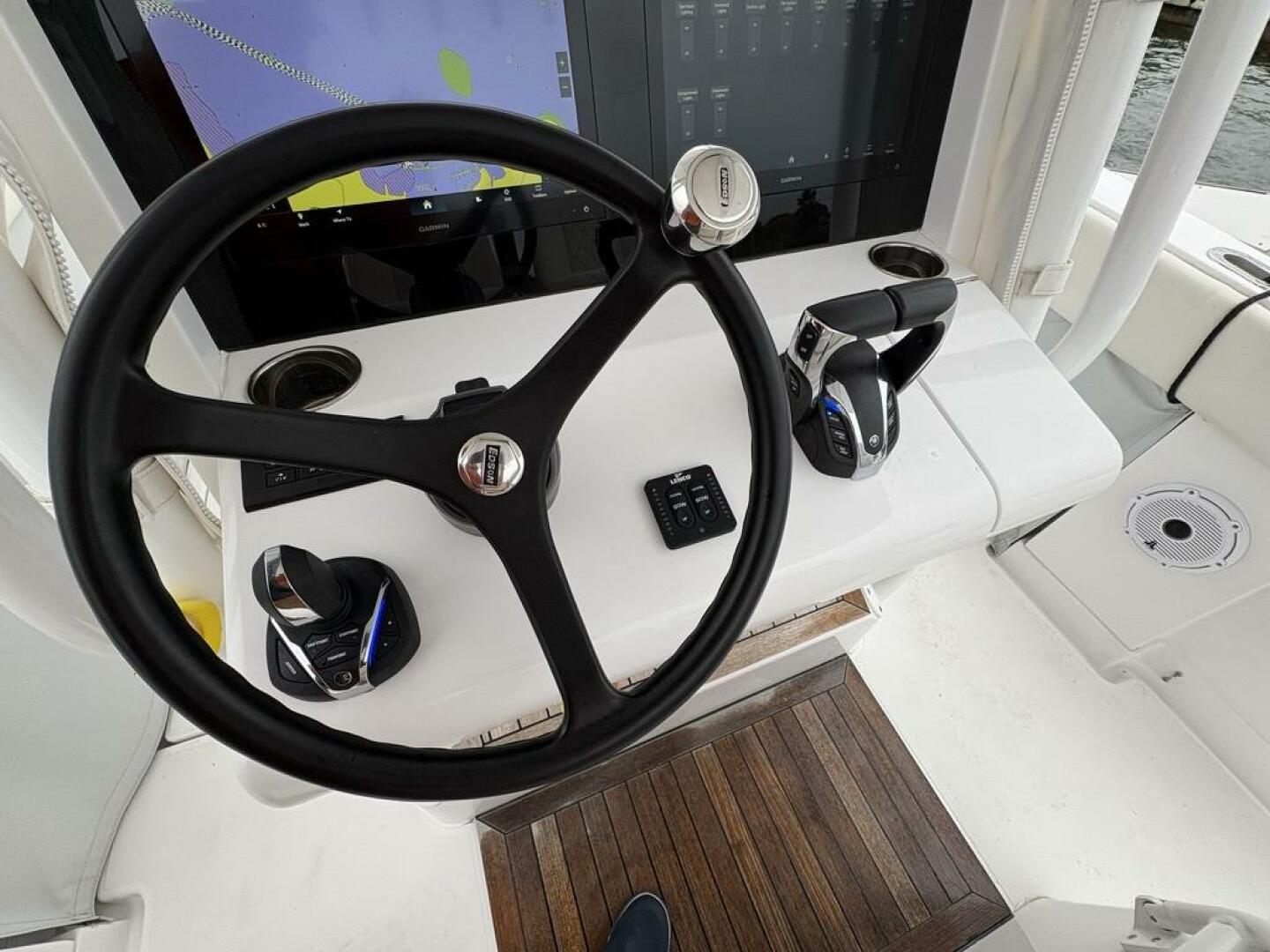 From offshore fishing to waterfront dining, secluded beaches to the yacht club, the Jupiter 30 with its variety of features and seating options can do it all. This low hour 2023 Jupiter 30 is powered by a pair of low hour Yamaha F300's which are accompanied by the Yamaha Helmaster EX Joystick System for unaparalleled ease of maneuverability.