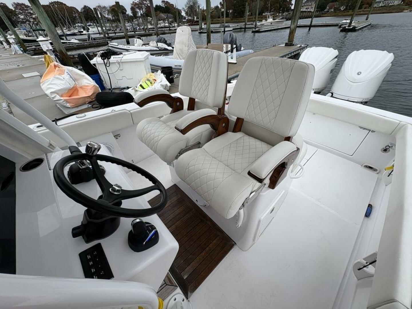 Just in is this like new 2023 low hour 30 Jupiter. She comes powered by a pair of Yamaha F300XA's (100hours) with Helmaster EX joystick for seamless maneuvering at dock or on the fishing grounds.