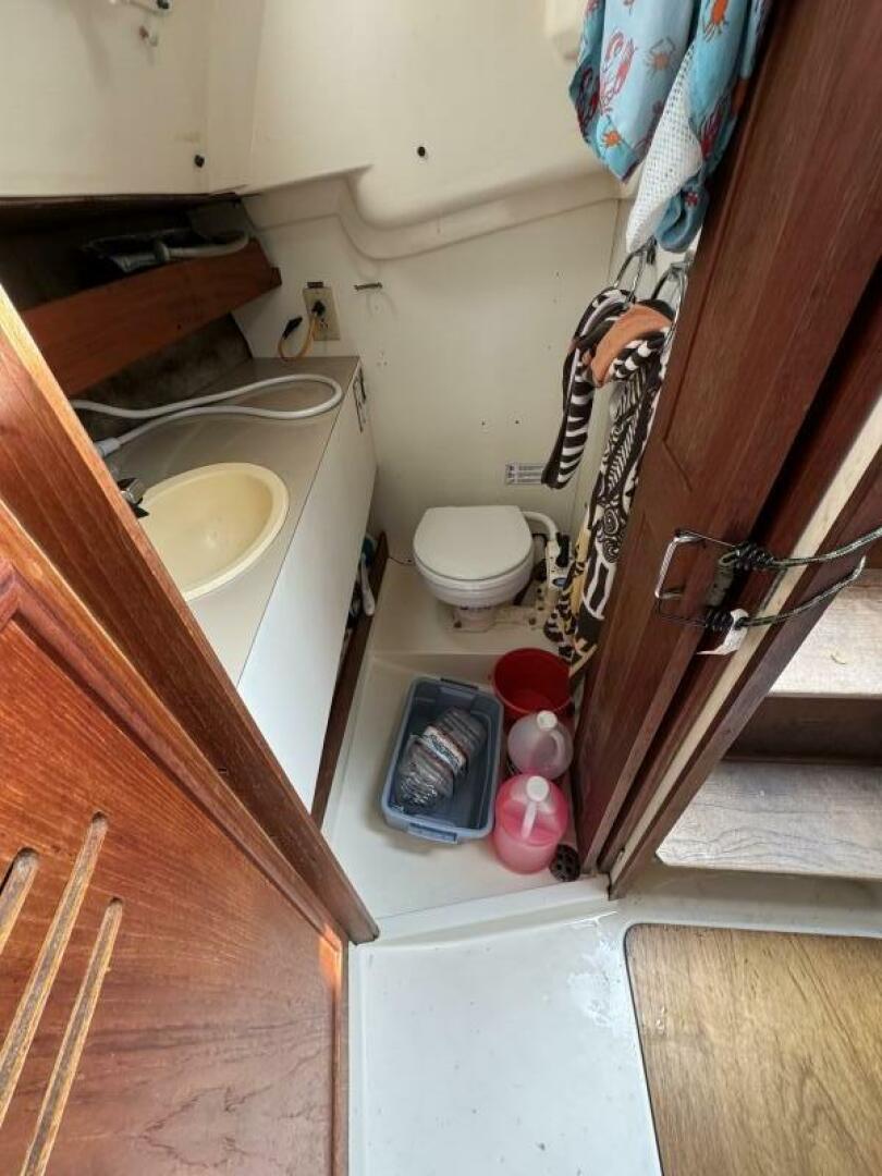 Her sailing setup includes a 3-year-old 135% furling genoa, a main sail with cover, and a spare jib. The Pearson’s balanced hull design handles strong winds with confidence, making her an excellent choice for both new sailors and seasoned cruisers.