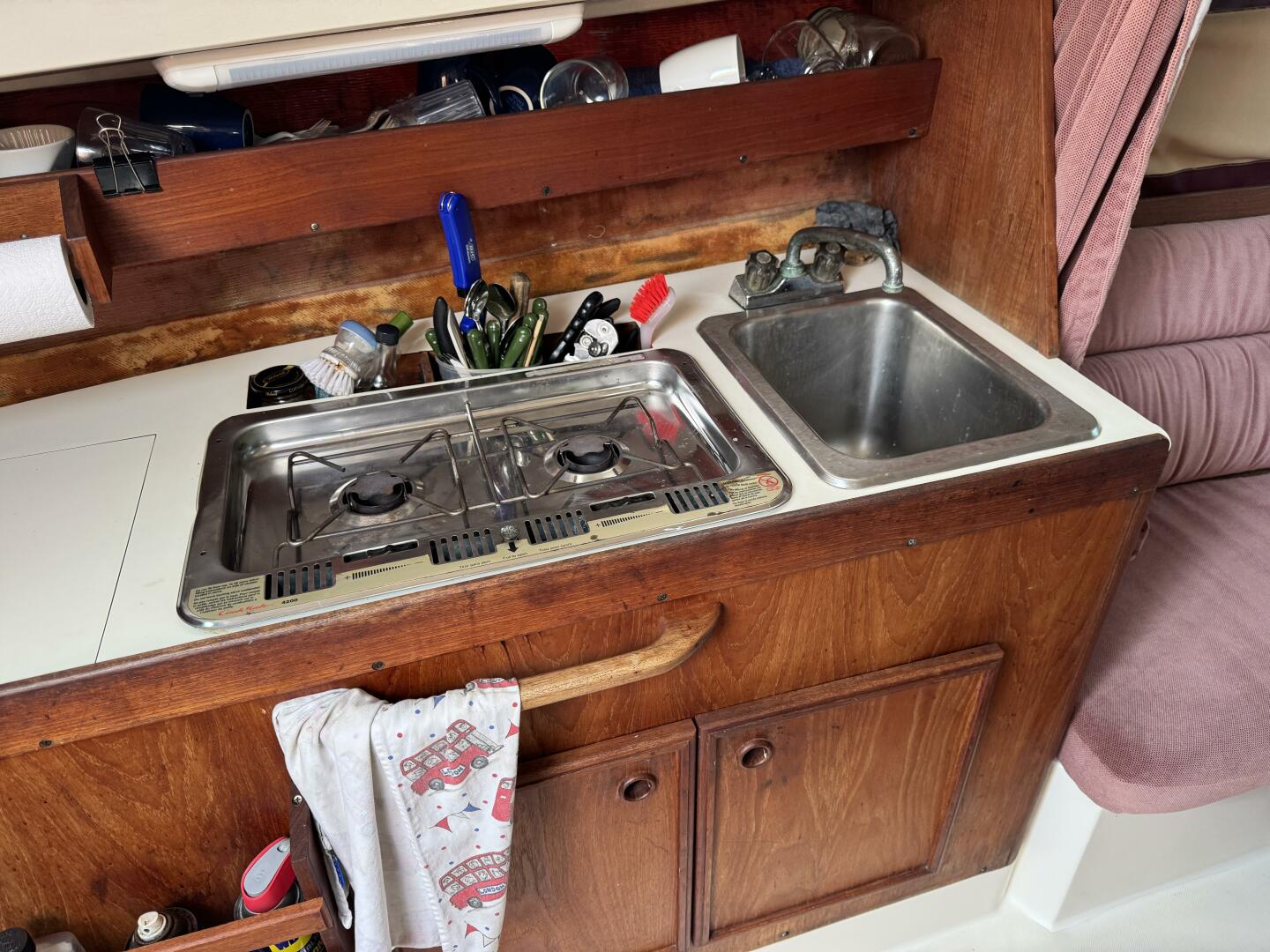 - Bright interior with over 6' headroom and convertible dinette berth