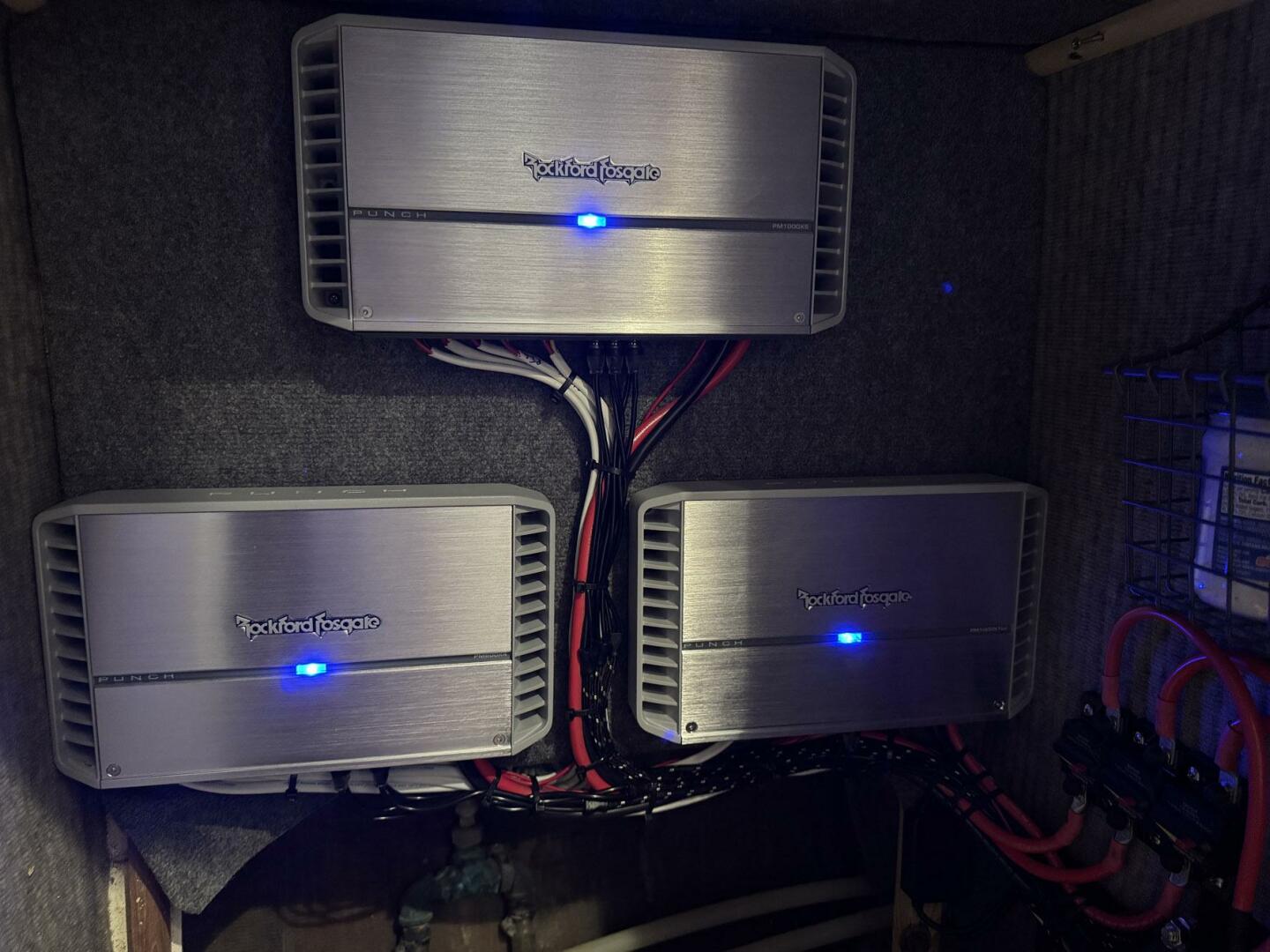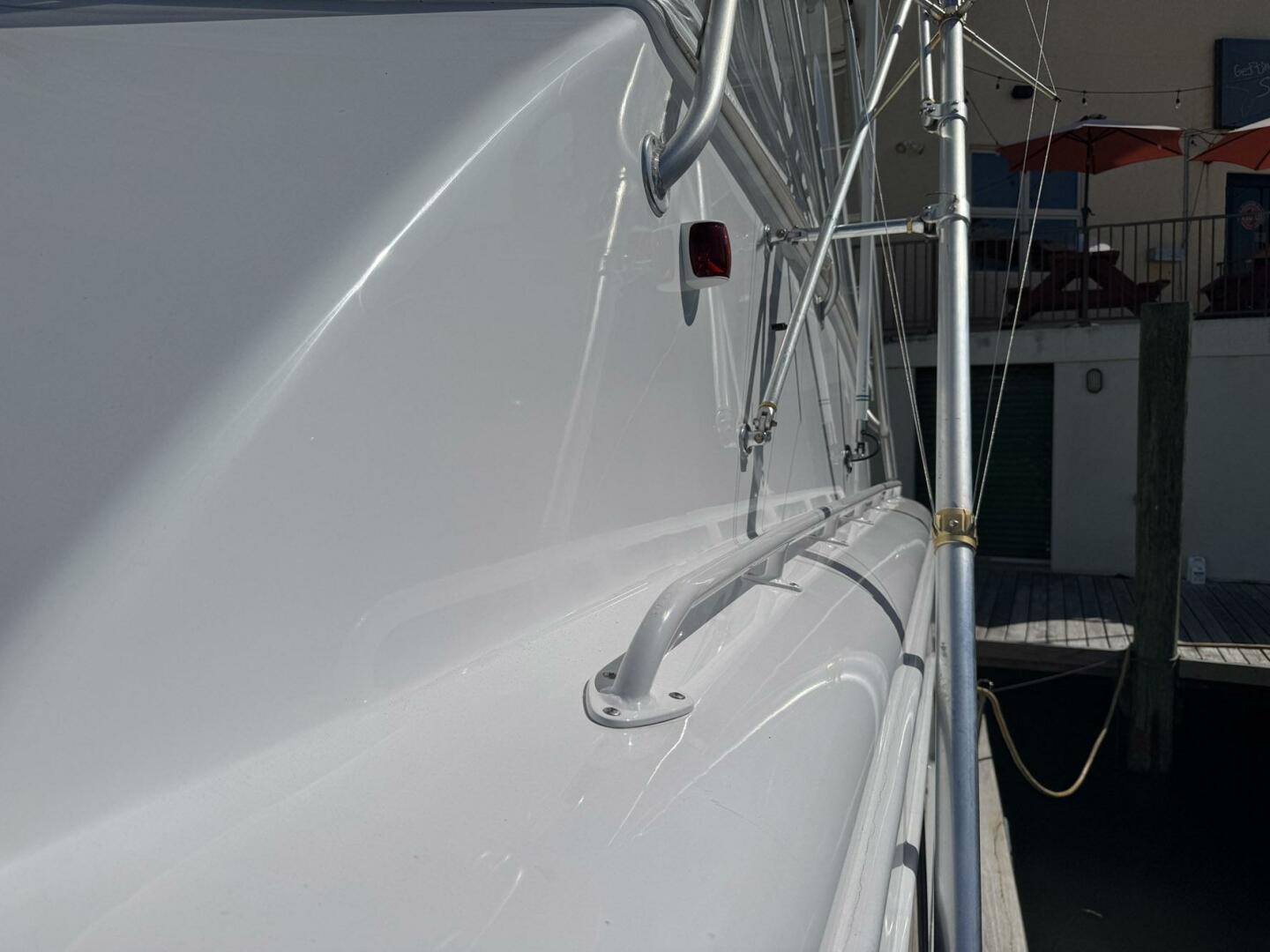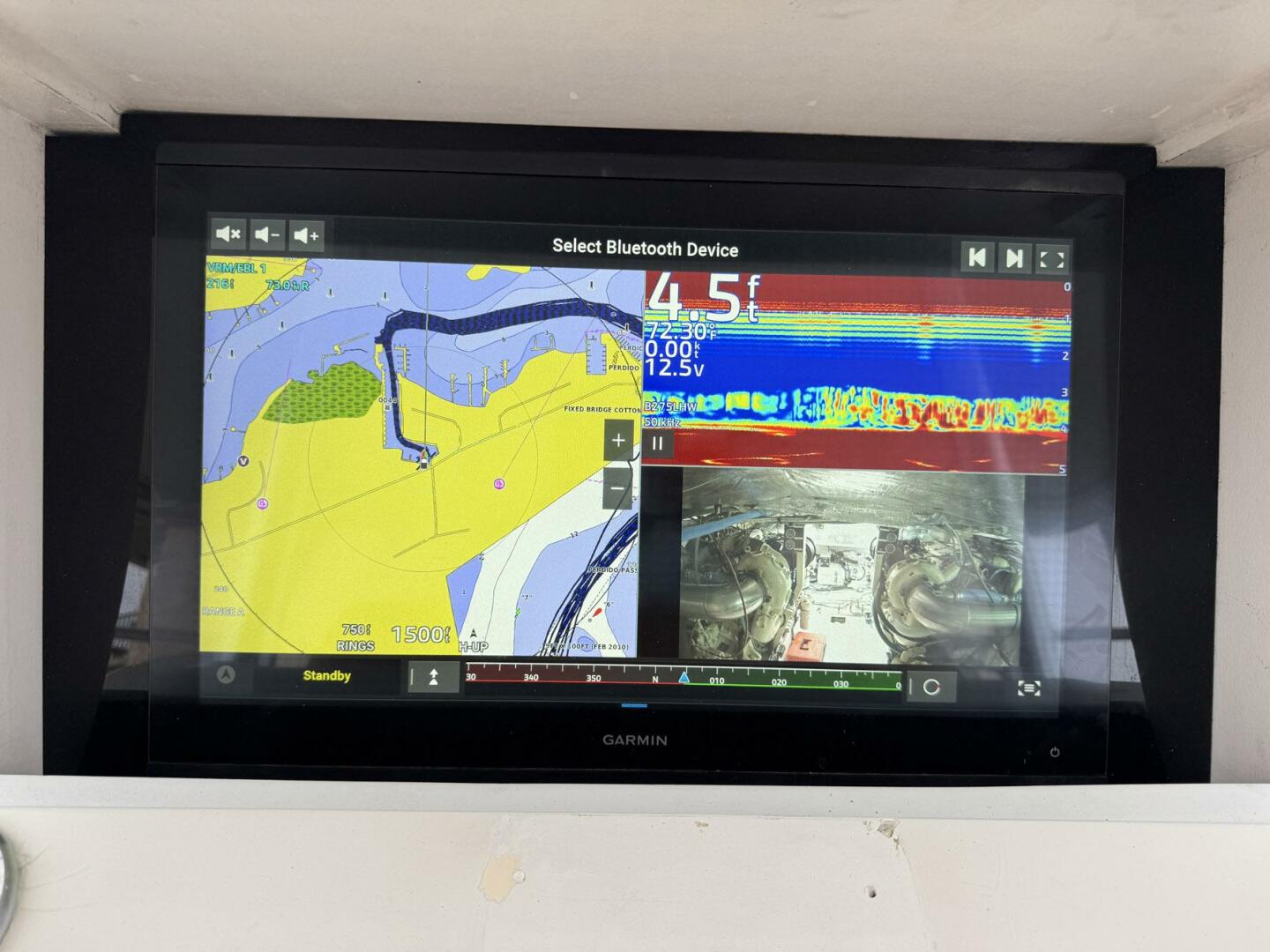High Tide has been nicely updated throughout its last two owners to include Garmin electronics, night vision camera, bridge enclosure, hull and topside paint, starlink, a new Phasor-Kubota generator, fire suppression system, windlass, pedestal in cockpit, anchor, chain and rope, updated microwave, custom carpet, new faucets, and countertops. New cockpit TV, new props, underwater lights and black mask on brow all recently replaced. The Rockford-Fosgate speakers, subwoofer, and amplifiers will please even the most discerning audiophiles and at maximum volume!