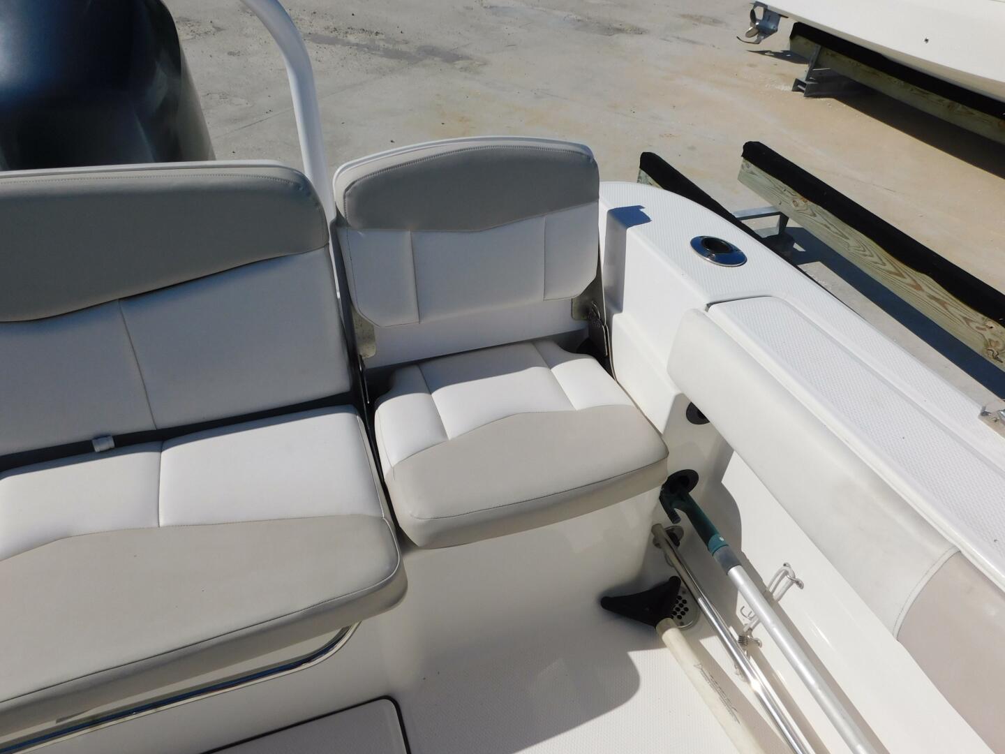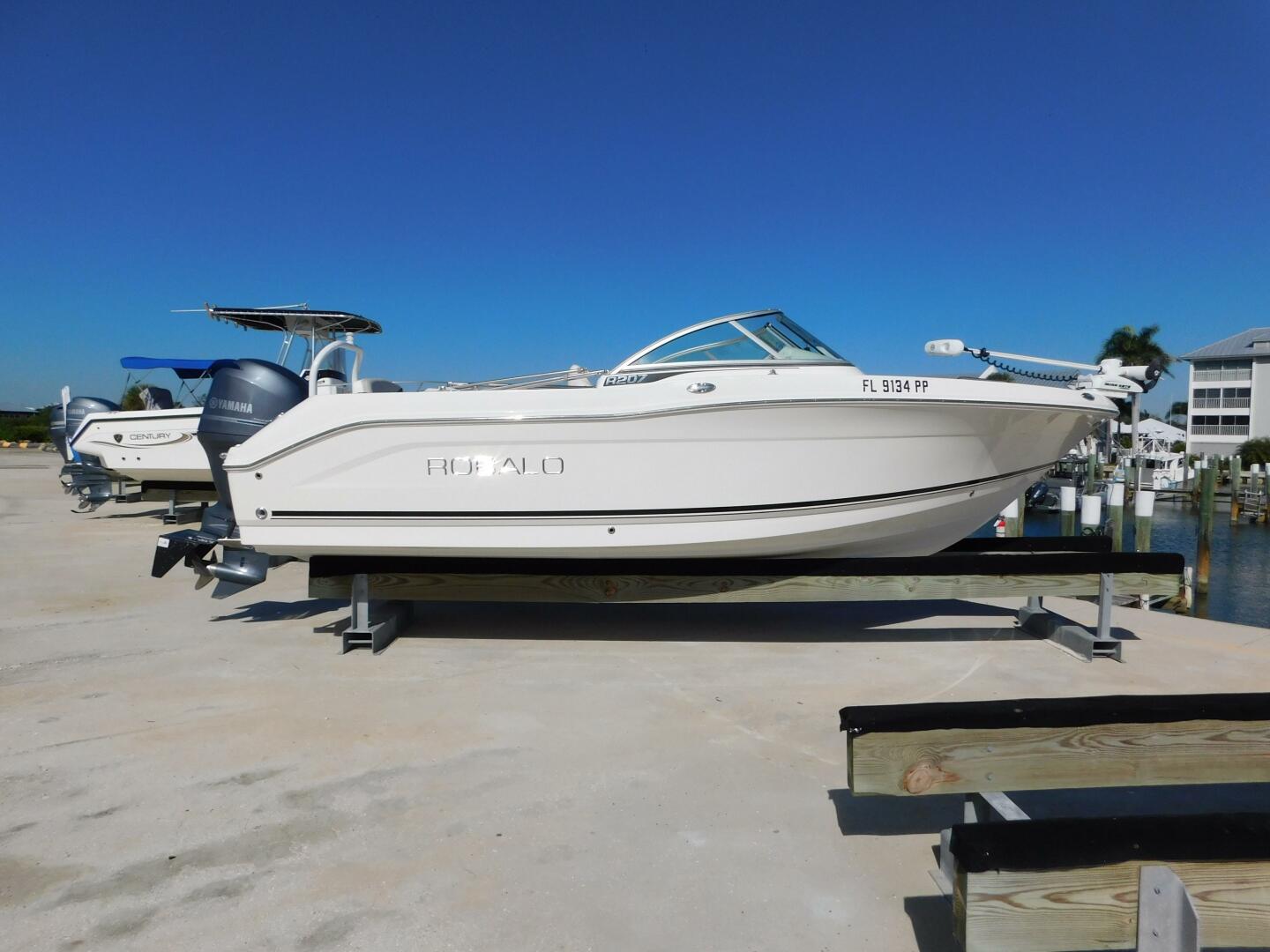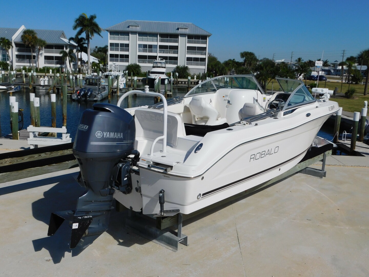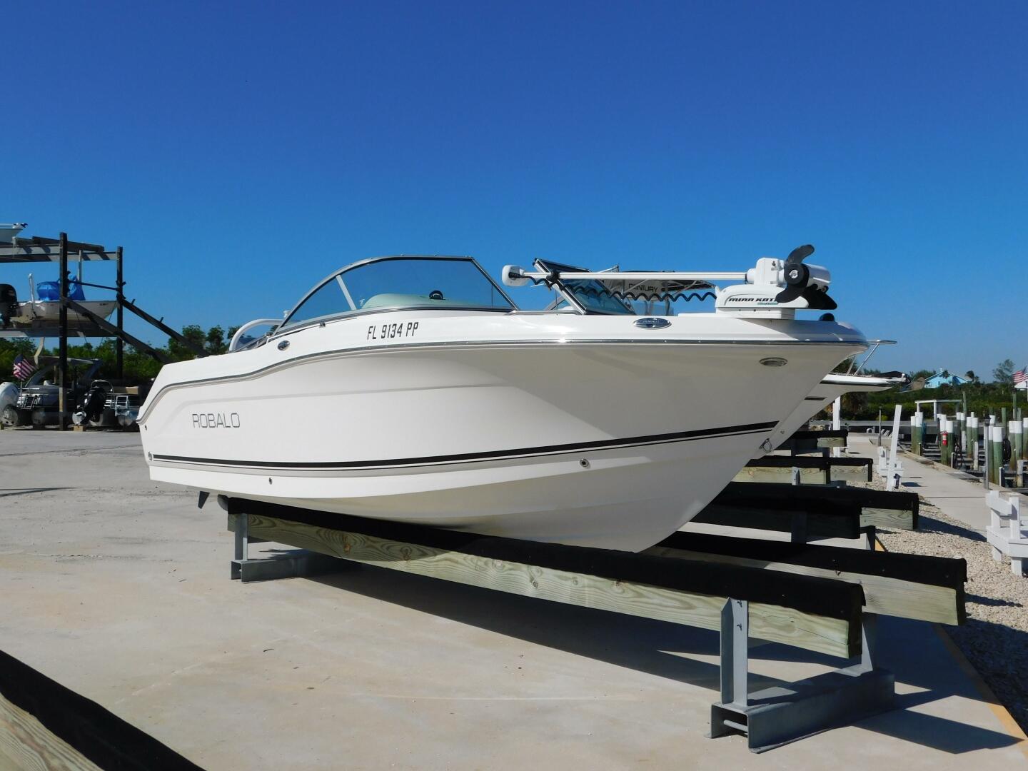 Fresh on the market is this super clean 2014 Robalo R207 Dual Console sport boat powered by a well-maintained Yamaha F150 4-Stroke outboard with just 380 hours. Some of the included equipment and options are a Minn Kota Riptide Trolling Motor, Newer Upholstery, Optional Ski Arch, Bimini Top, Full Beam Rear Seating with Rumble Seats, Large Live Well, Tinted Windshield, Enclosed Head, Trim Tabs, Folding Swim Ladder, Large Bow Seating Area and much more. A little bit fishing boat, a little bit ski/wake boat and a lot of sport boat all wrapped up into one fantastic family adventure at a great price for a very nice Robalo R207 Dual Console.